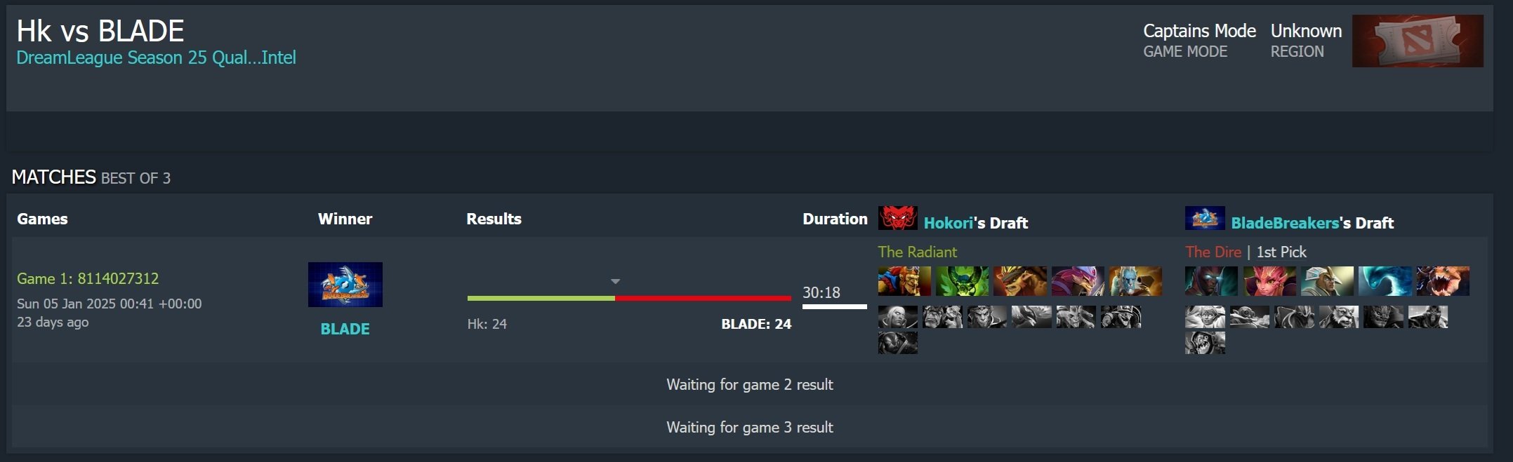 https://game-tournaments.com/dota-2/dreamleague-season-25/south-america/blade-breakers-vs-hokori-586358 ссылка на дота 2 торнаментс с официальным началом данного матча в 05 января, 03:41 MSK, Best of 3
