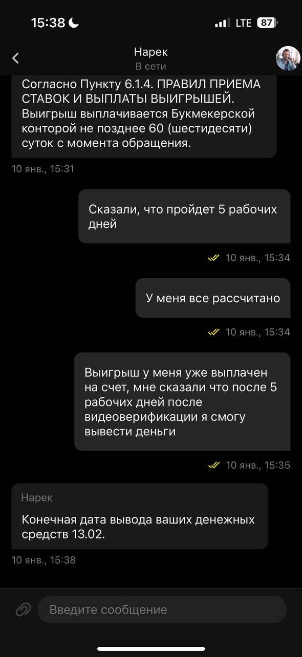 Мне просто сказали ждать 60 дней чтобы вывести деньги, хотя деньги уже давно на балансе и пари все рассчитаны
