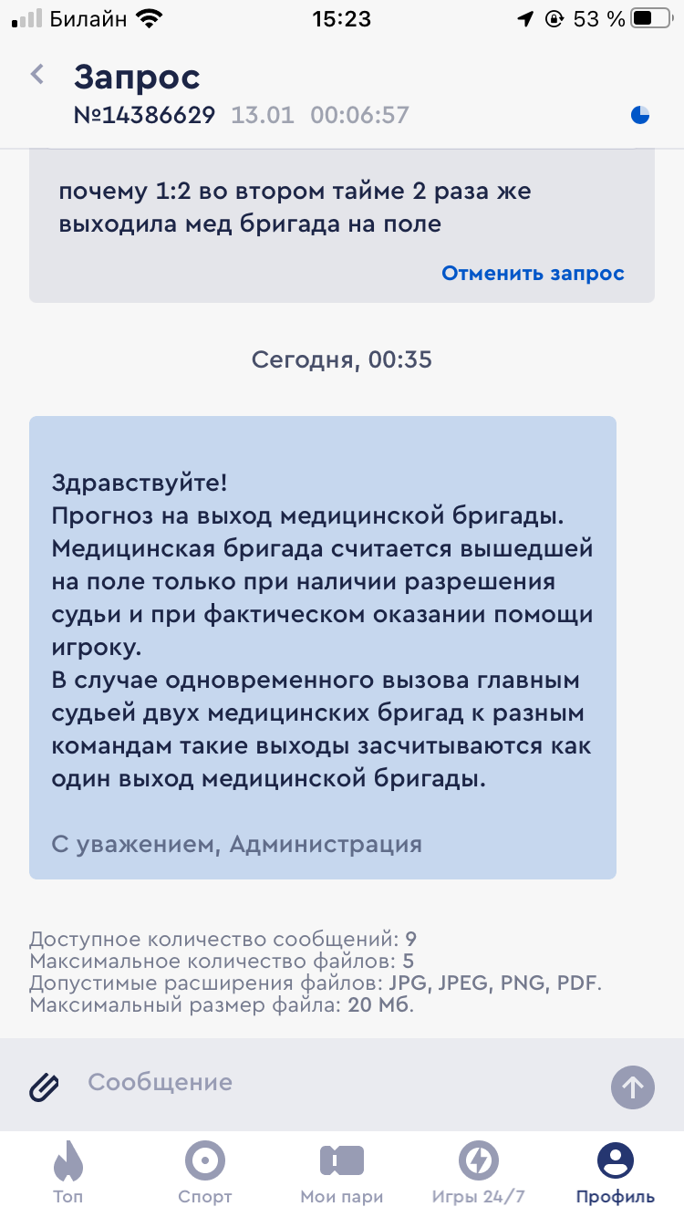 В матче Барселона -Реал года. После первого тайма счёт выходов на поле мед бригады был 1:1. После первого тайма на 62-63 минуте Тчуамени сфолил на Дани Ольмо за что получил жёлтую карту, после оказывалась помощь мед бригадой Ольмо и во время оказания помощи показывали опасные моменты матча, по окончанию повторов, на трансляции видно что мед бригада уходит с поля после оказания помощи Ольмо. На 78-79 минуте так же вышла мед бригада и оказывала помощь Рафинье. Рассчитано 1:2 выходы мед бригады. Оператору написал, представил скрины как мед бригада уходил с поля после оказания помощи Ольмо. На что оператор тупо мне отвечает, что видео не нужно а на скриншоты просто игроки стоят )))) а то что стоит мед бригада игнорирует.