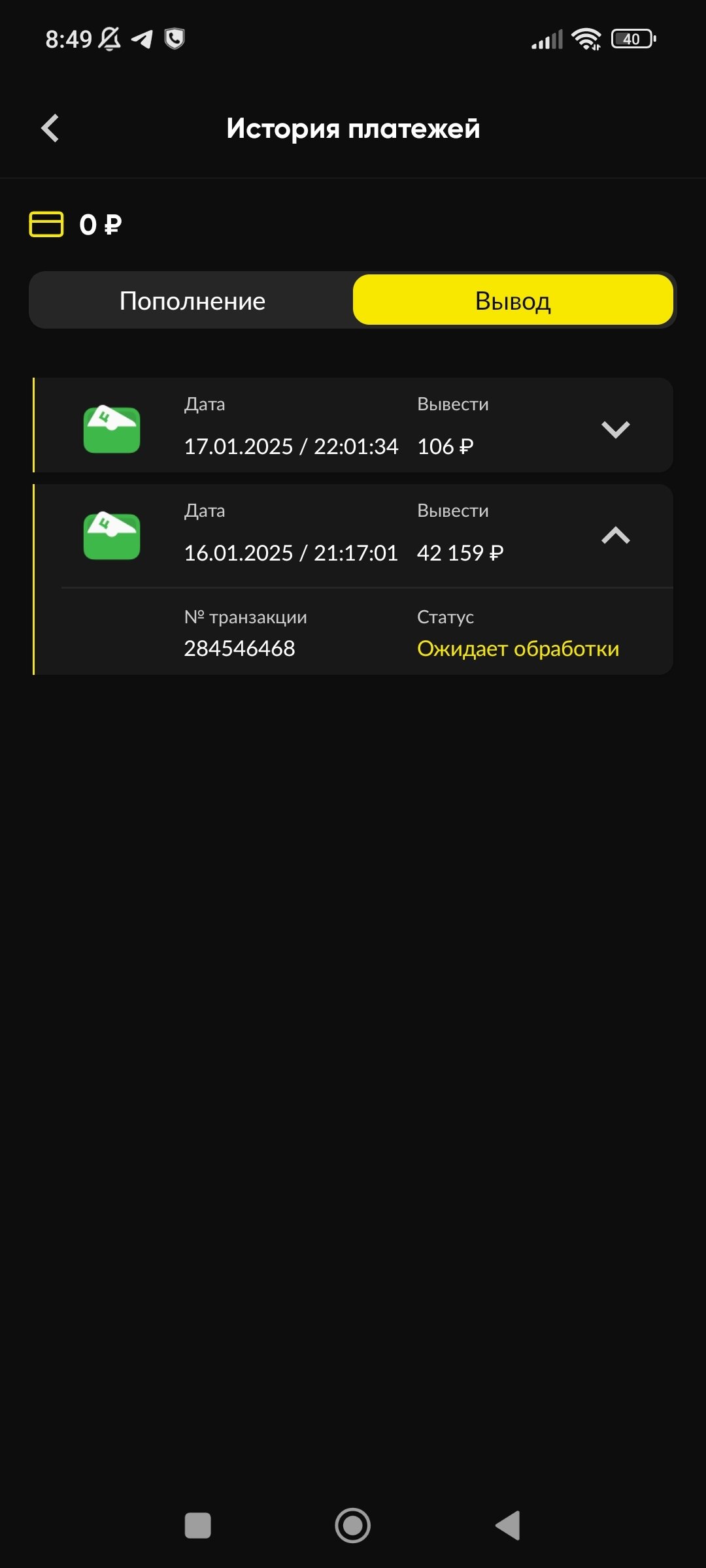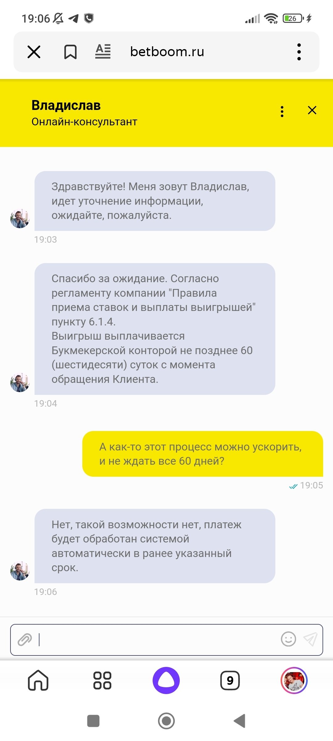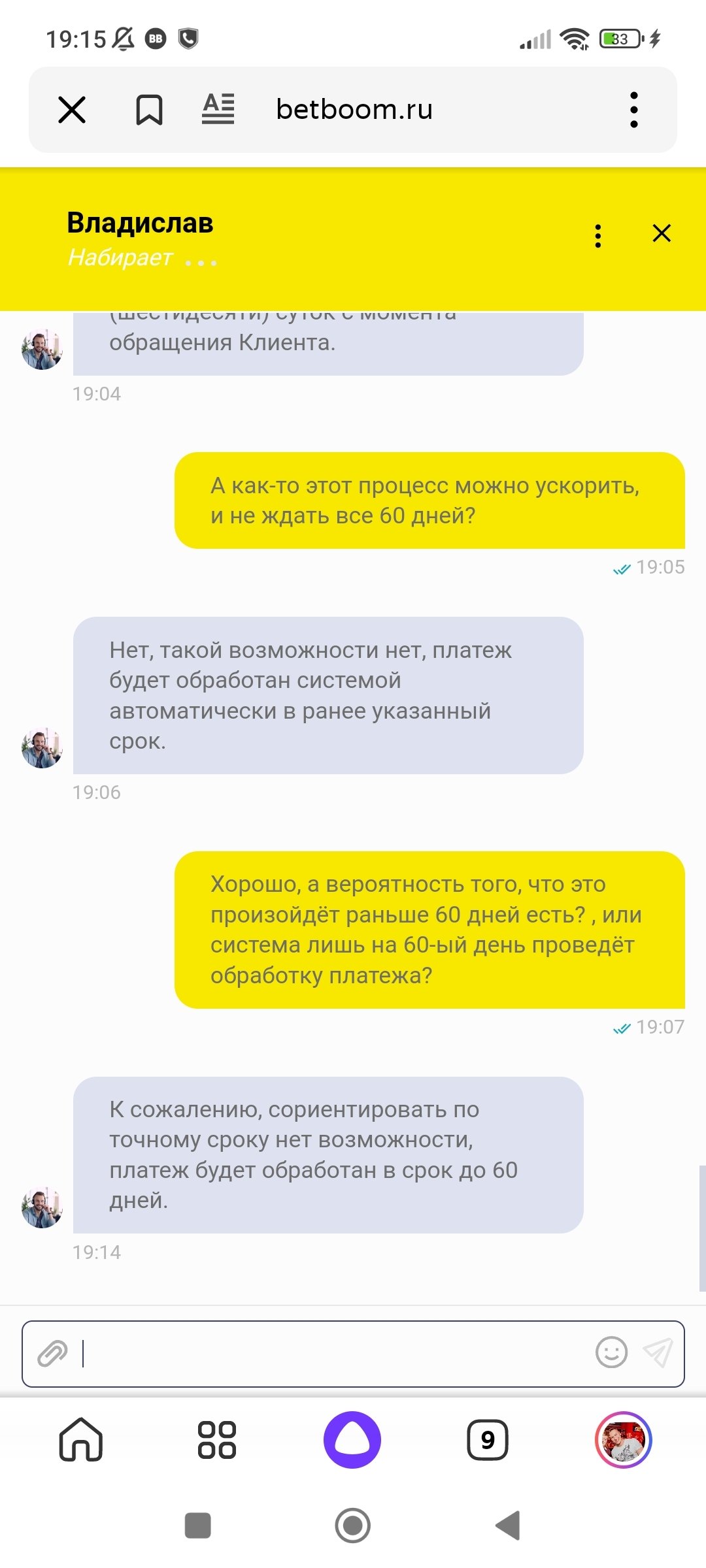 БК Бетбум пользуюсь не так часто, но регулярно, пару раз в месяц. В основном ставил на киберспорт, и при успешном завершении пари, выигрыши выводились на кошелек ЦУПИС в течение 5-10 минут. Никогда с этим проблем не было. 16 января 2025 года завёл в контору сумму и проставил в лайве на матч КХЛ. В результате ставка сыграла и на баллансе нарисовалась сумма в 42159 рублей. Сформировал запрос на вывод так же на кошелёк ЦУПИС. И начались "танцы" С бубнами. Если ранее вывод был оперативным, то сейчас они начинают ссылаться на своё внутренне правило со сроком вывода до 60 дней. Никаких дополнительных проверок мне не предъявлено, т.к верификации давно уже всё проведены, как в самой БК Бетбум, так и в цуписе. Объективных причин для задержки нет. Просто совсем не понятно, что это за срок такой - 2 месяца, для чего он необхолим, какая в нём необходимость? Сумма: 42159 ₽