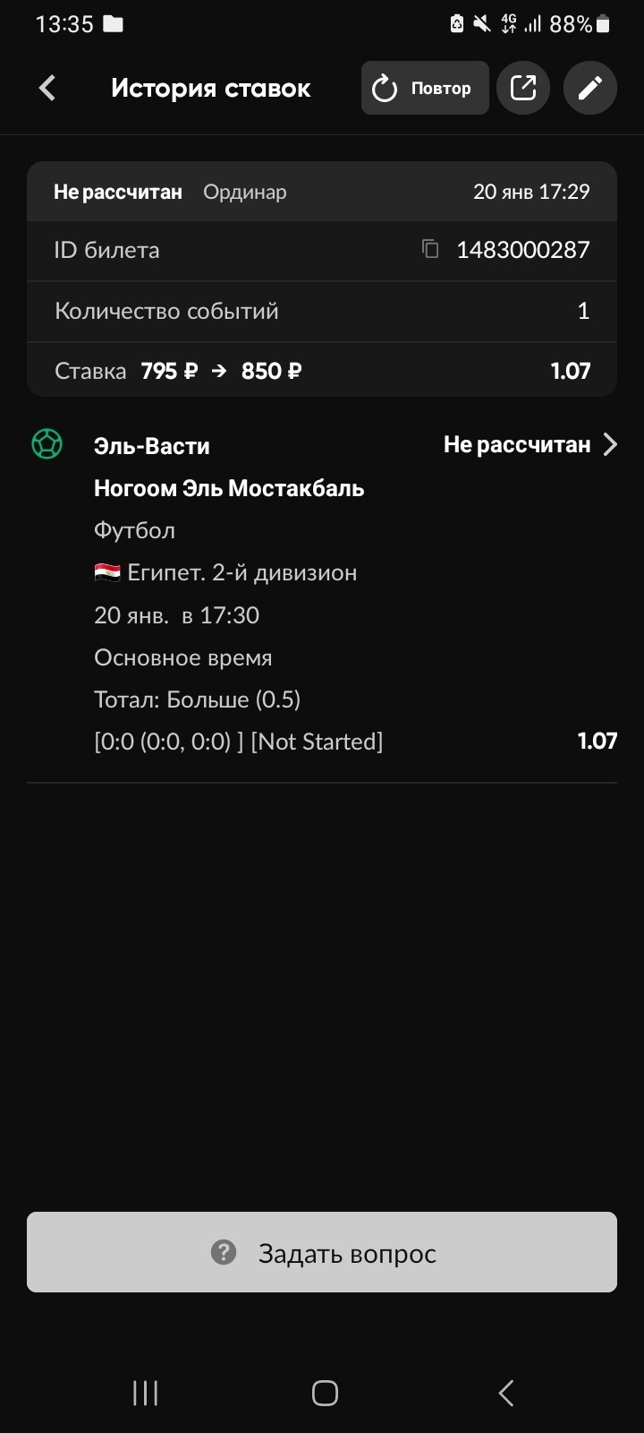 Добрый день не рассчитывают ставку мне. Прошли уже почти сутки ссылаются нет информации по матчу как такое возможно, если в интернете я смотрел есть результаты матч, они говорят ждут официальную информацию от организаторов я думаю специально не рассчитывают ставку мне так как в интернете есть информация по матчу не на одном сайте если посмотреть.