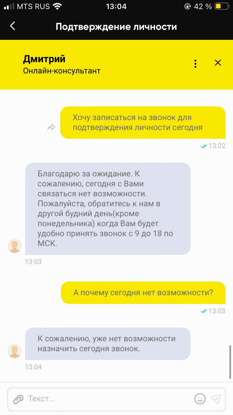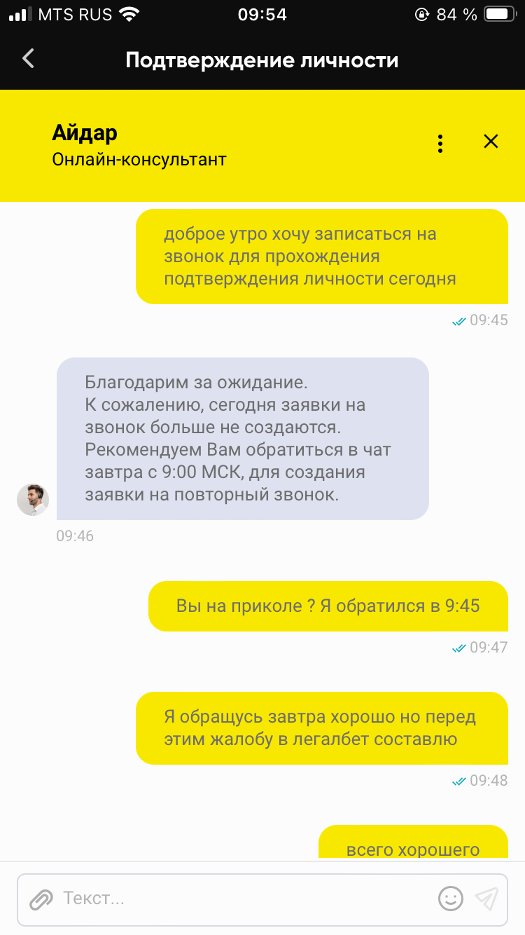 Здравствуйте хочу составить повторную жалобу на букмекерскую контору второй день подряд не могут записать на звонок нормально вот скрины доказательства рабочий день с 9 до 18 у них якобы нет мест сегодня вообще в 9:45 написал чтоб заранее прям просьба помочь мне никак не могу повлиять на них