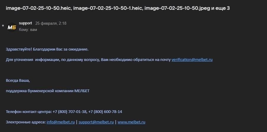Здравствуйте. Нам сообщают, что вам ответили 10.02 и больше вы на связь с БК не выходили.