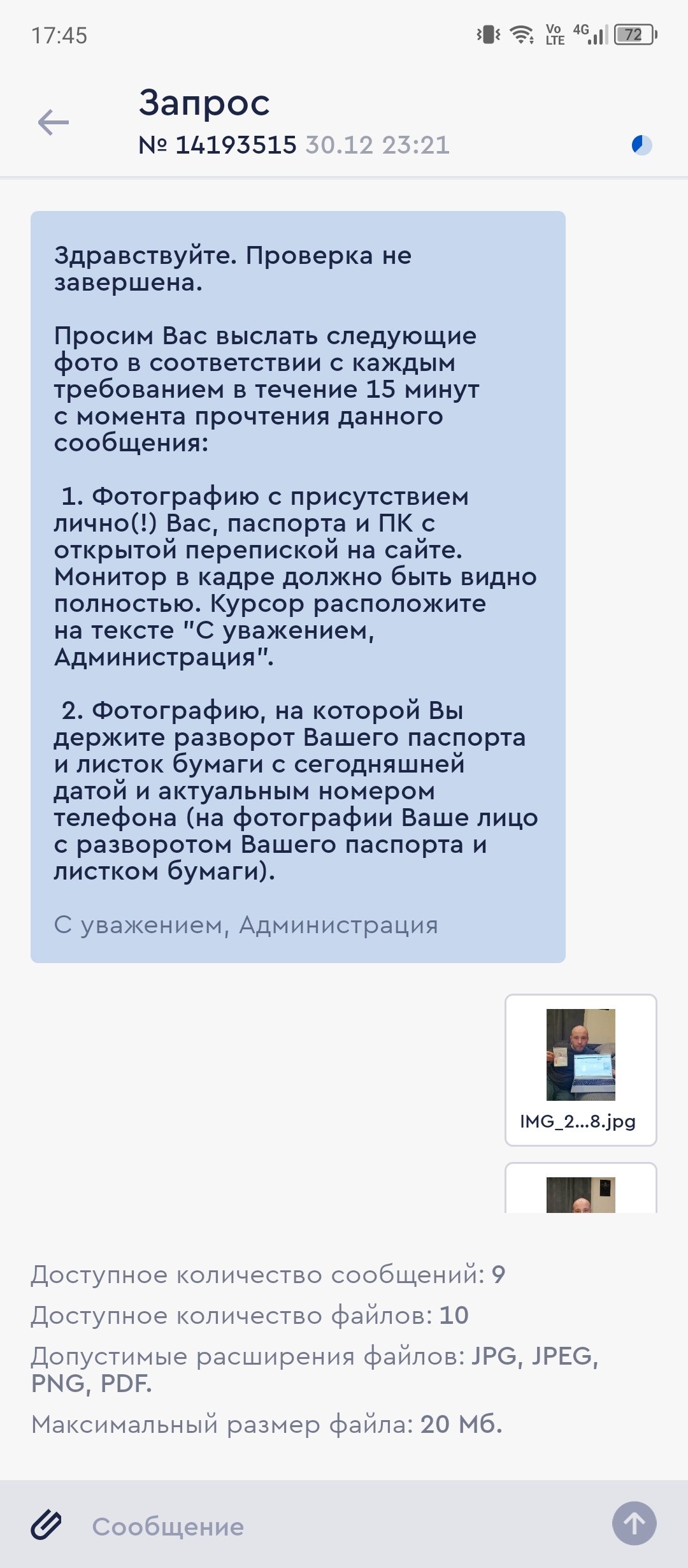 Добрый вечер . мой id 7087347 Валеев Тимур Рифатович ,уже более 10лет играю в фон бет . И недавно мне назначили процедуру верификации , попросили скинуть фотки . Я все скинул . Назначили видео звонок , я на все вопросы их ответил . Сказали ответят через неделю . Прошла неделя, попросили снова скинуть фотки и снова на недельное ожидание. И так уже 5-ый раз . Просто издевательство какое то !!! Все это тянется уже почти два месяца !Очень сильно вас прошу помочь мне , спасибо !
