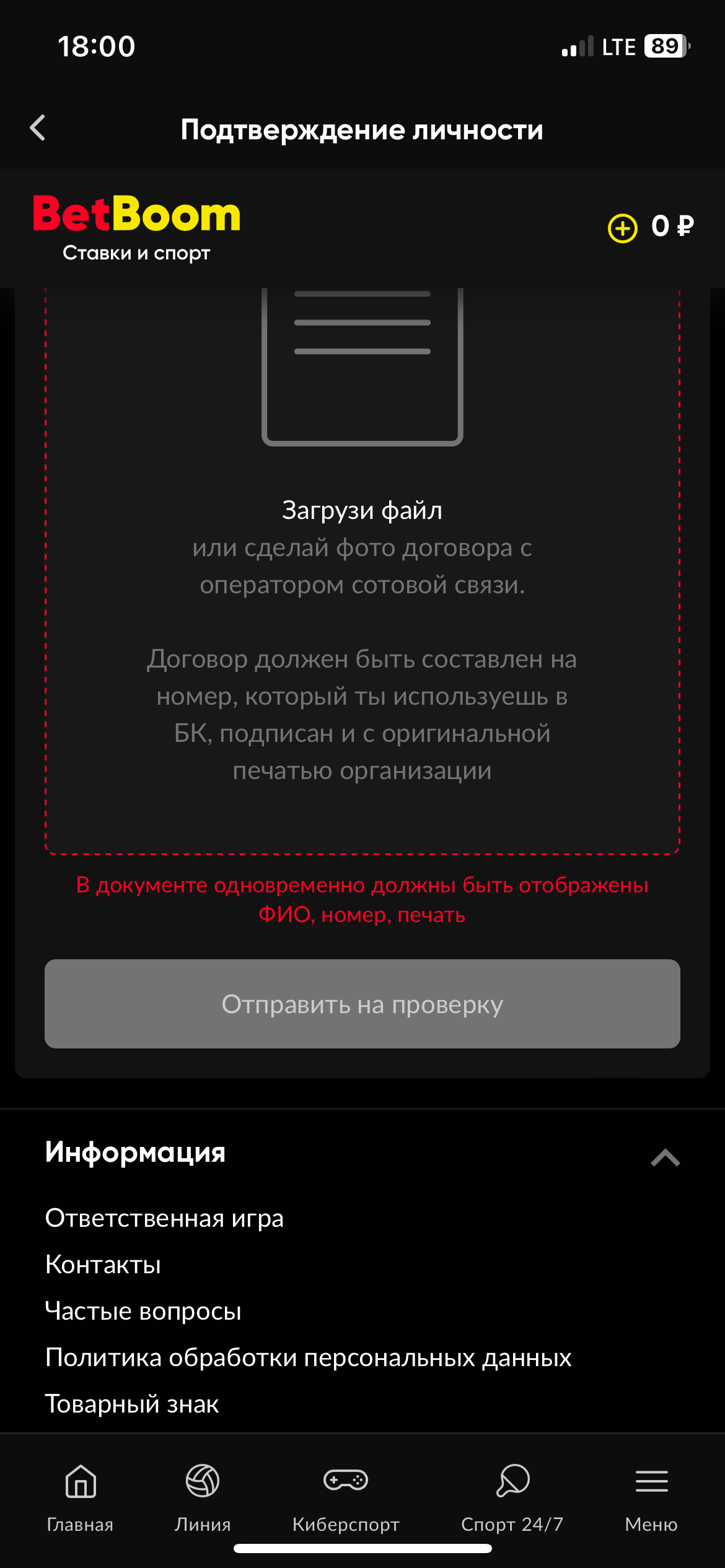 Был в салоне сотовой связи оставил , заявку о принадлежности мне моего номера , сроки ожидания до 14 дней . Взял детализацию с подписью и печатью , но им этого мало говорят вот что прикладываю скрин , все остальное прошел , осталось только это . Нельзя никак пройти эту верификацию? Или обязательно сначала нужно им этот договор ?