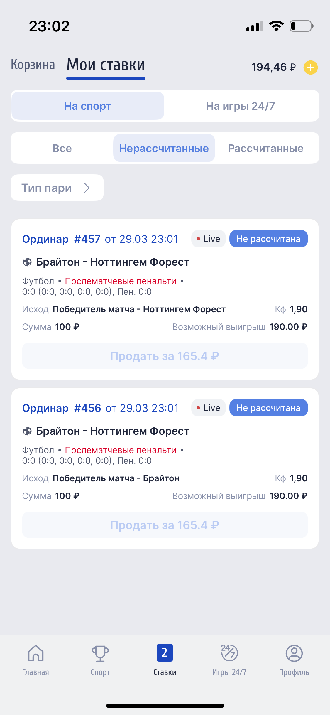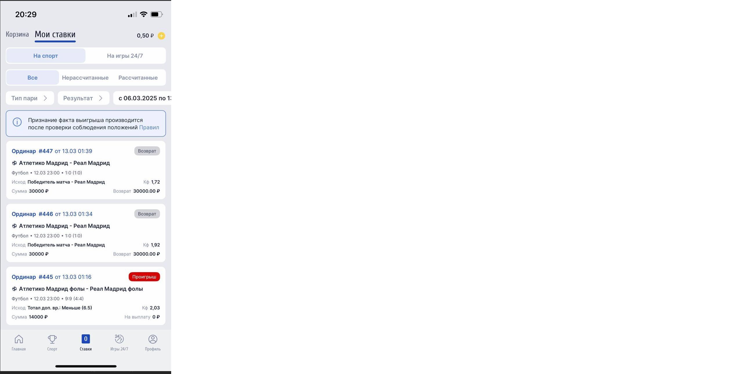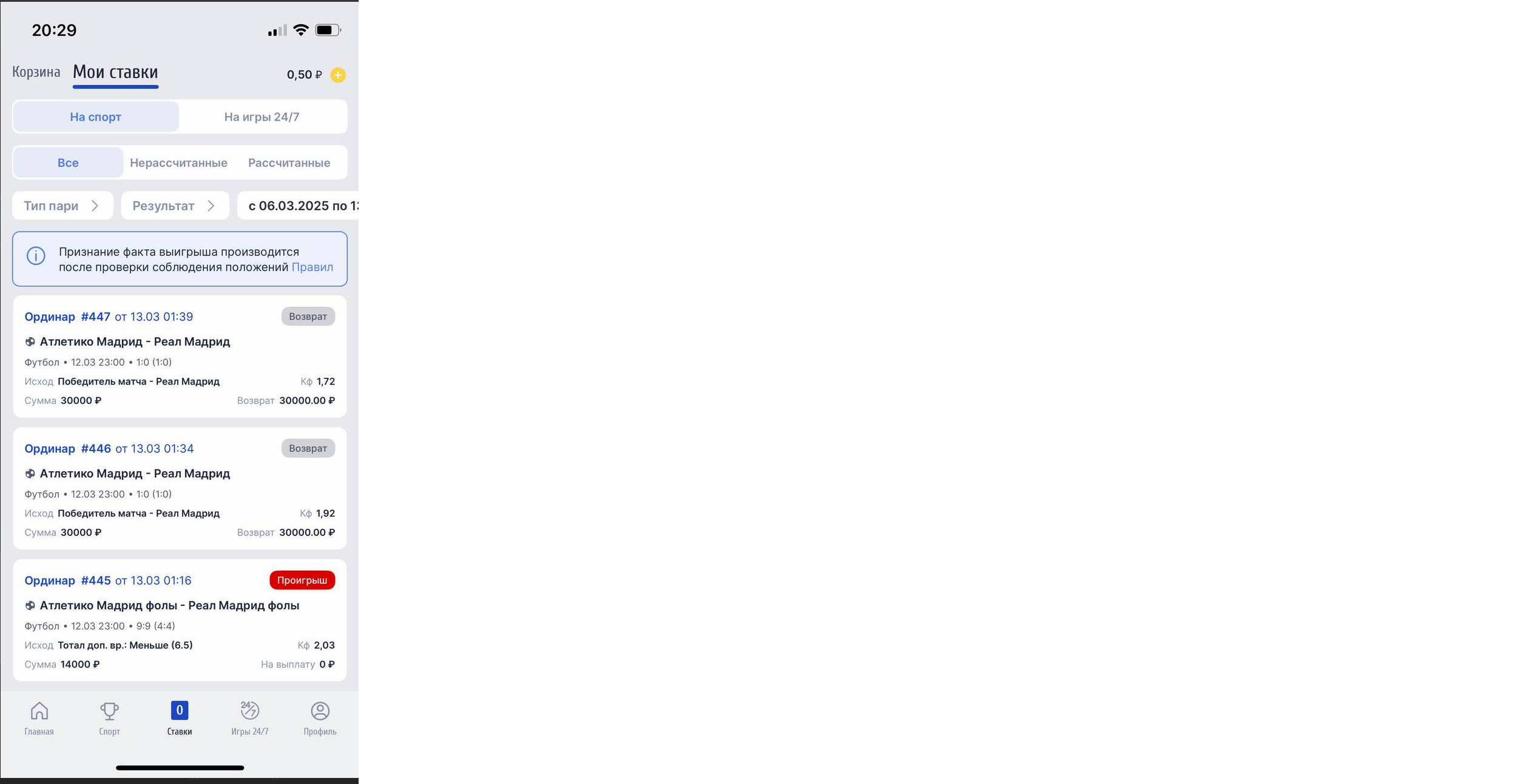 Ставки были сделаны в букмекерской конторе ZenitWin (Зенит) Мною была сделана ставка Ординар #446 от в 01:34 по МСК. Ставка была сделана на исход: Победитель матча — Реал Мадрид. Кф Я смотрел этот матч, как и все миллион людей на планете и видел, что дополнительное время закончилась в 01:33. Дальше началась тренерами и игроками выбор бьющих, их очередность и жеребьевка кто начнет бить первым. Сам первый пенальти был пробит 01:37:09 по МСК. Первый пенальти пробил игрок Реал Мадрид Мбаппе. То есть делаем вывод, что моя ставка была сделана до начала серии пенальти и принята за коэффициент действительный и правильный. Так же мною была сделана ставка Ординар #447 от в 01:39 по МСК. Ставка была сделана на исход: Победитель матча — Реал Мадрид. Кф .Это ставка была сделана после третьего общего пробитого пенальти или второго пенальти команда Реал Мадрид. 01:39:09 к мячу шел игрок Альварес и ударил Альварес только в 01:39:29, то есть ставка была сделана на коэффициент действительный и правильный. Фото моментов обоих пенальти прикрепил. Время по Гринвичу, то есть различие от МСК в три часа.