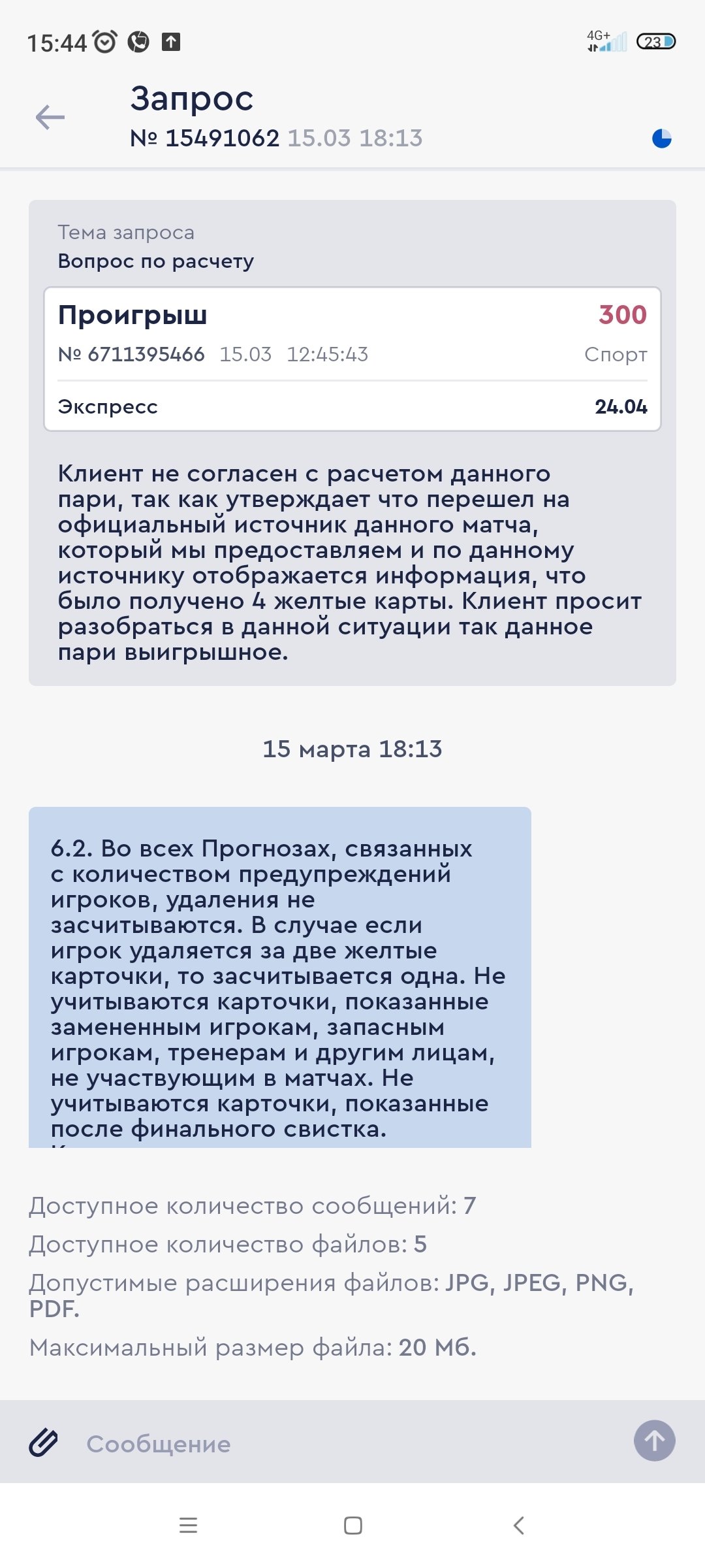 Здравствуйте. Переубедить БК не получается. Расчет карточек велся по трансляции матча. А карточка вратарю на 87-й минуте в трансляции не видна. Поэтому ее не учли при расчете.