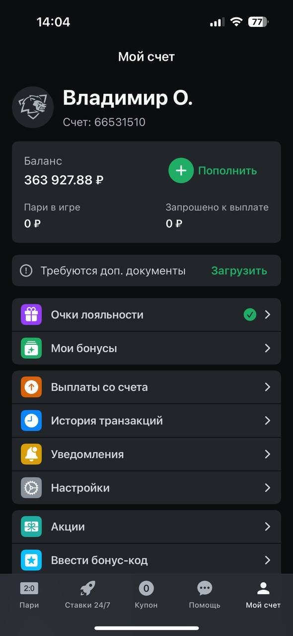 Добрый день! Играл в этой букмекерской конторе продолжительное время, всё было хорошо. Но месяц назад () мне заблокировали вывод средств и сказали пройти видео верификацию. Согласовали её прохождение в ближайшее возможное время (). В назначенную дату прошёл видео верификацию и через пару дней () получил ответ, цитирую: "Процедура видеоверификации успешно пройдена и ваш игровой счет разблокирован для получения выплаты.". Однако в этом же письме получил запрос на предоставление банковской выписки по дебетовой карте (выписку попросили живую, с мокрой печатью и подписью сотрудника из офиса банка), а деньги к выводу не были разблокированы. Выписку предоставил в точности как запросил букмекер , написали, что документы приняты и со мной свяжутся в ближайшее время. Прошло уже почти две недели, ответа от букмекера до сих пор нет. Очень прошу уважаемый Легалбет посодействовать решению данной проблемы, эти деньги мне очень нужны, чтобы закрывать кредиты и долги, я их не могу получить уже больше месяца. Очень надеюсь на Вашу помощь! Заранее огромное спасибо!