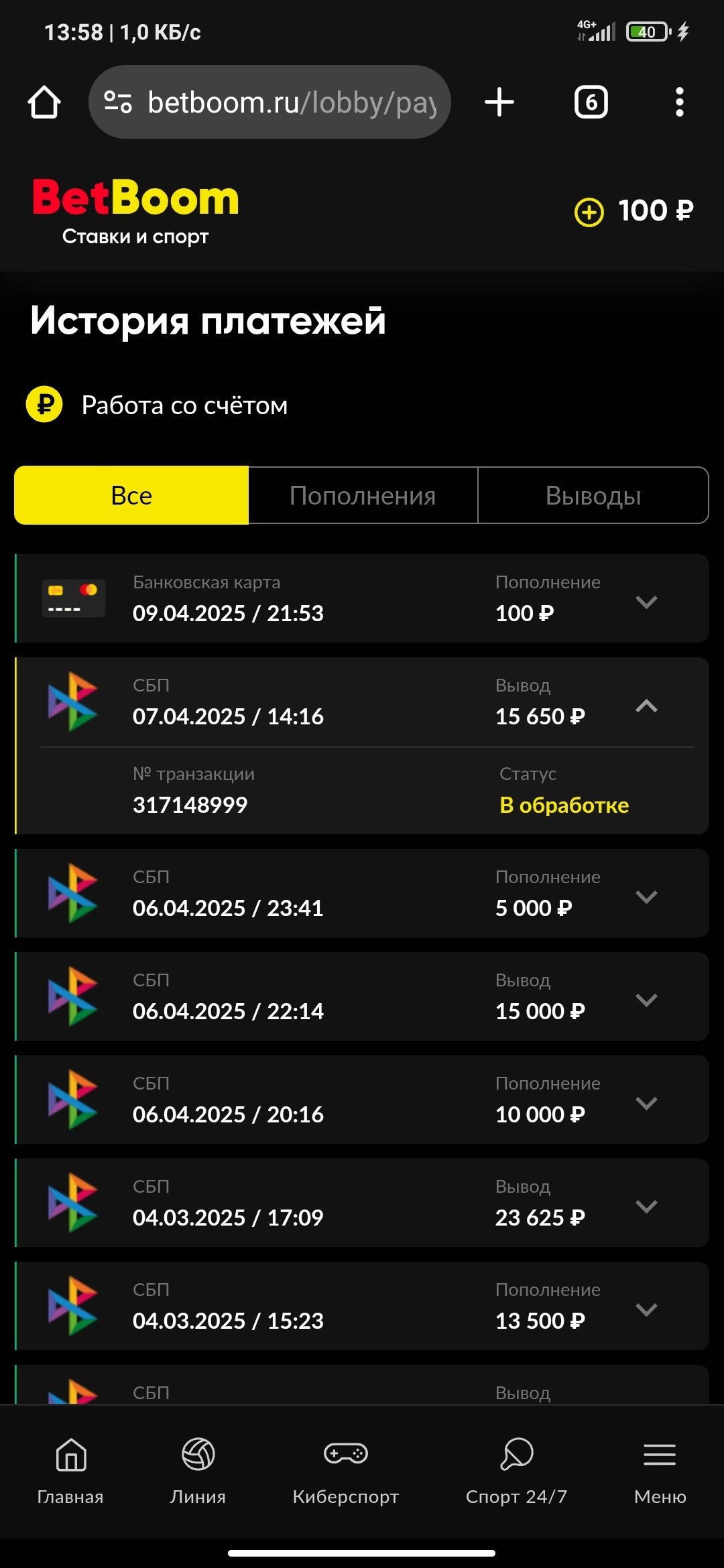7 апреля попытался вывести деньги и сразу же отправили на проверку данных. После кучу загруженных фото документов появилась кнопка для принятия звонка от аналитика для проверки документов. По сей день никто не звонит, а в чате бот отвечает постоянно что все операторы загружены и ожидайте.