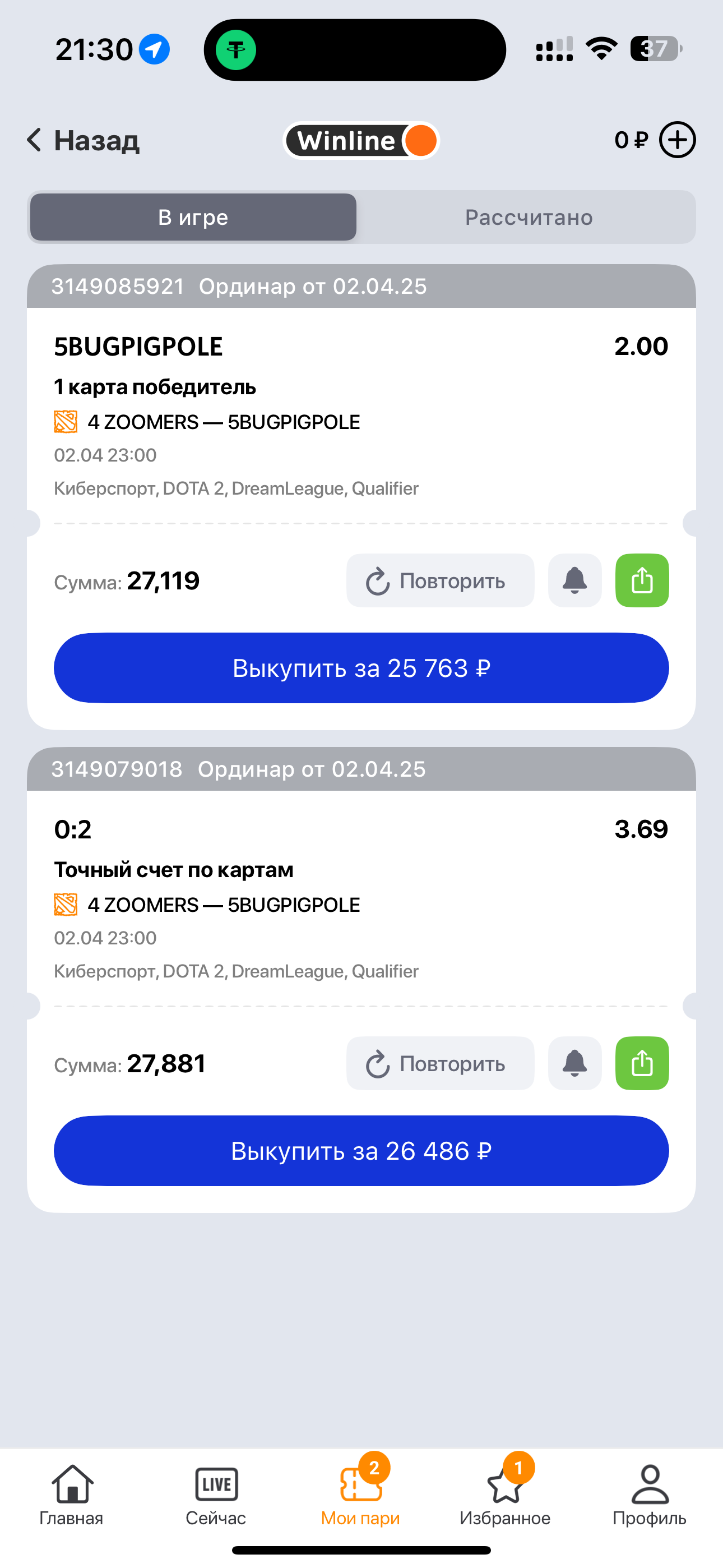 Итак, решил я значит зайти поставить на винлайн, знаю что крупный бк, хорошая репутация и тд) Но зашел я сюда из-за того, что на моих основных бк не было этого матча, я ставил на доту, турнир который активно смотрел. Я довольно хорошо разбираюсь в доте и частенько угадываю результат. В этот раз все удалось угадать. Получилось 2 ставки: 1 - 27119 на кф 2 и 2 - 27881 на кэф . В итоге выигрыш составил 157118р. Увидел денежку и пошел выводить, словил несколько отмен на вывод по сбп, и дело 100% не в моих банках. Попробовал вывести на цупис, прошло минут 30 - пришла отмена. Захожу в лк, баланс нулевой и ставки вернулись в игру) хотя до этого были рассчитаны)Начал узнавать, везде говорят про 365 с момента ставки. Потом кореш рассказал историю, как у него также задержали деньги, прошло 365 дней и тупо вернули депозит на счет, выигрыш посчитали недействительным из-за неправильно рассчитанных коэффициентов, благо там было немного - он не стал разбираться. В общем, я знаю что по закону расчет в течение 365 дней. Но я также уверен, что выигрыш обнулят, я в любом случае так это не оставлю. Очень сильно надеюсь, что Вы можете повлиять на решение раньше этого срока. Результаты матча давно известны, и даже есть в цуписных бк, так что это легко доказать) Все данные предоставлю по запросу, есть все пруфы
