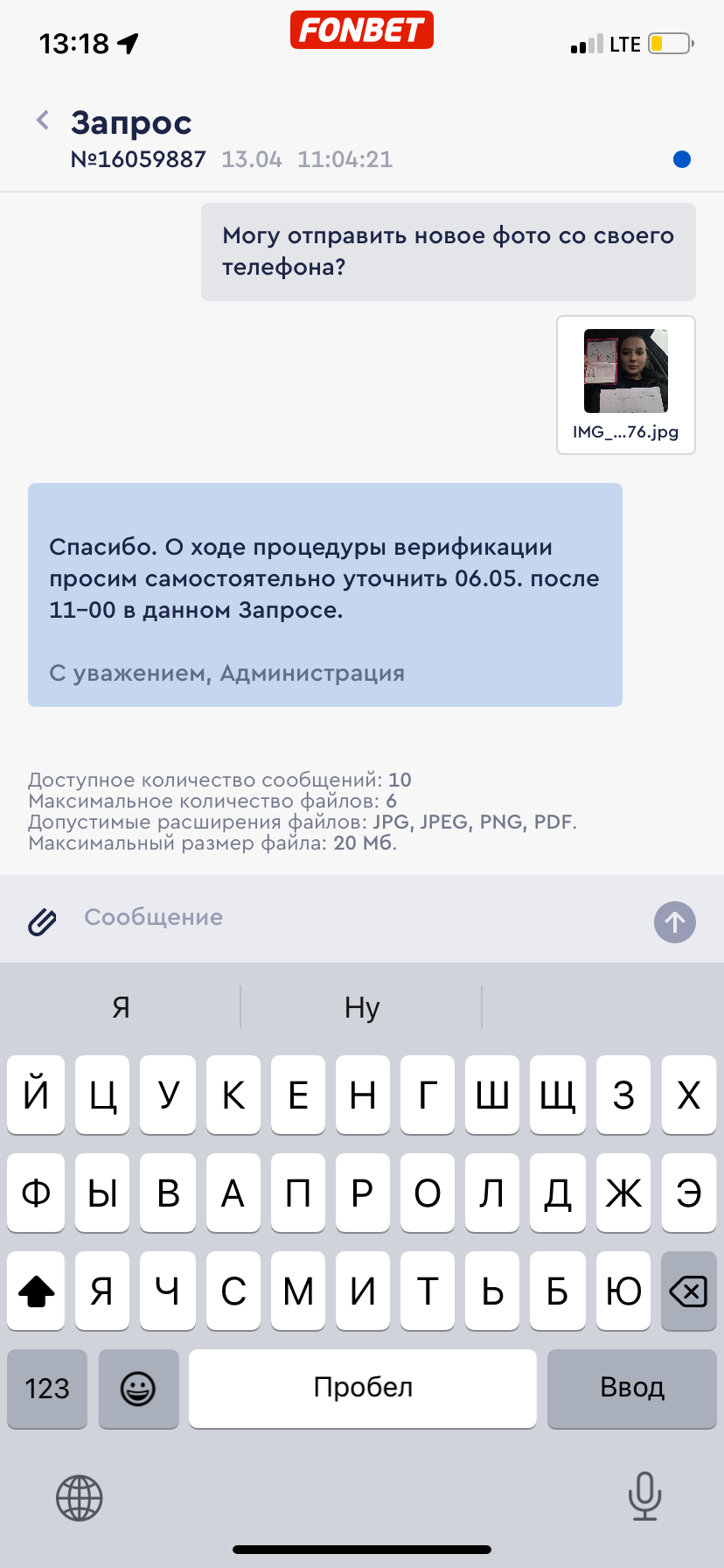 С августа 2024 года ставлю в БК Фонбет, никогда не было проблем с выводом и пополнениями, играла в основном на быстрые игры, иногда пари на спортЧаще всего была в проигрыше, около -800к на аккаунте. ставила ставки пари на спорт, что-то проиграла, но и выиграла. При попытке вывести свои денежные средства, мне заблокировали вывод и пополнение, сославшись на службу безопасности. Я создала запрос и начала процедуру верификации, отправила многочисленные фотографии, а так же прошла назначенную видеоконференцию. После этого, служба поддержки начала задавать вопросы различного характера, на которые я так же предоставляла все документы и фото, на что поддержка подозревает меня в том, что переписку веду не я. На сообщения служба поддержки не отвечает, операторы горячей линии хамски отвечают на вопросы, кормят обещаниями ждите ждите. Как мне быть? Как доказать, что ставки делала именно я и процедуру прохожу так же я. Все денежные средства на аккаунте.