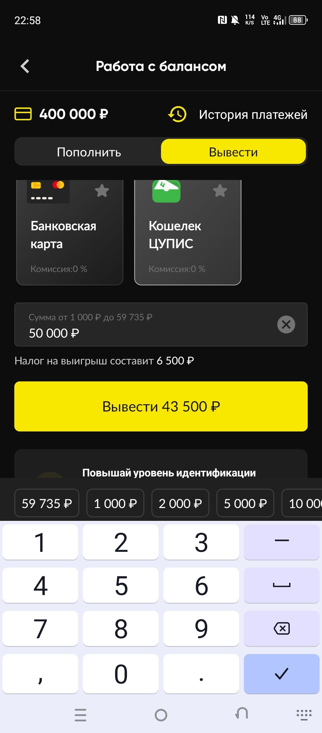 Игроку был доступен вывод без удержания налога суммами менее 15000.