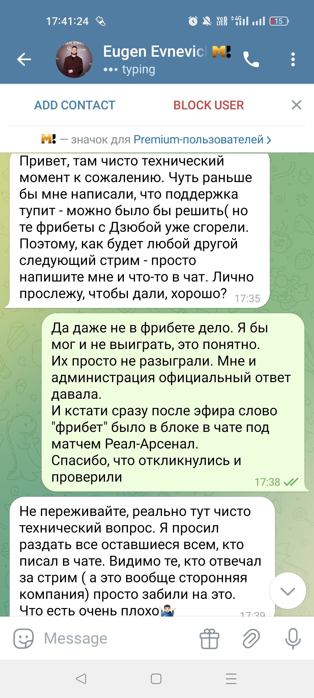 Перед ответным матчем ЛЧ Реал-Арсенал лига ставок организовала прямой эфир с Дзюбой. В эфире раздавали фрибеты за вопросы. Эфир вел Евгений Евневич. В эфире раздали 16 фрибетов. В конце эфира ведущий сказал что фрибетов 100. И их раздадут людям задавашим вопросы в эфире.Я запросил результаты и список победителей. Мне выдали список из 16 человек. Остальные 84 фрибета не были розданы. Многие смотрели этот эфир и задавали вопросы из-за фрибета.Обратился в поддержку и описал операторам ситуацию. Они сказали предоставить запись эфира где было сказано про 100 фрибетов. Эфир был в приложении лиги ставок и нигде не сохранен. Я обратился к ведущему эфира. Он подтвердил что фрибетов обещано было 100, а не 16.