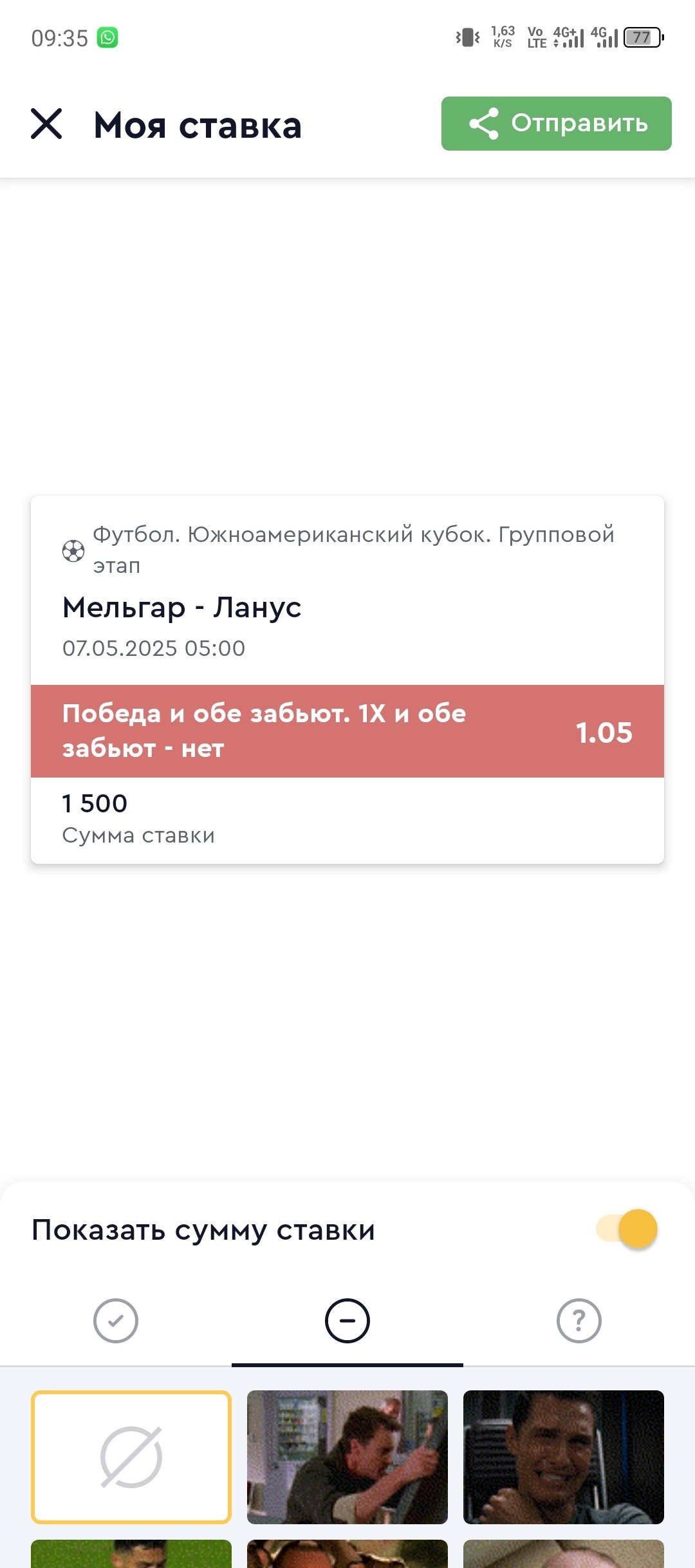 Я сделал ставку на футбольный матч Южноамериканский кубок.Групповой этап. Мельгар-Ланус счёт 0-1Моя ставка 1х и обе забьют-нет. Рассчитали как проигрыш. Позвонил в службу поддержки Олимпа, мне сказали если бы я поставил на "ДА", то я бы выиграл. Это бред какой-то.