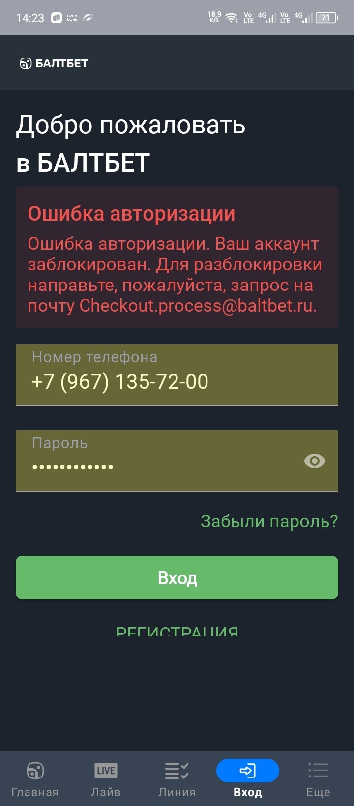 Здравствуйте, всё время играл честно в БалтБет,а тут ни с того ни с сего заблокировали аккаунт.У меня там деньги на счету!Ходил в ППС отправили уведомление с оператором в центральный офис с моими данными паспорта, решения все нет! Помогите пожалуйста разобраться и разблокируйте мой аккаунт!