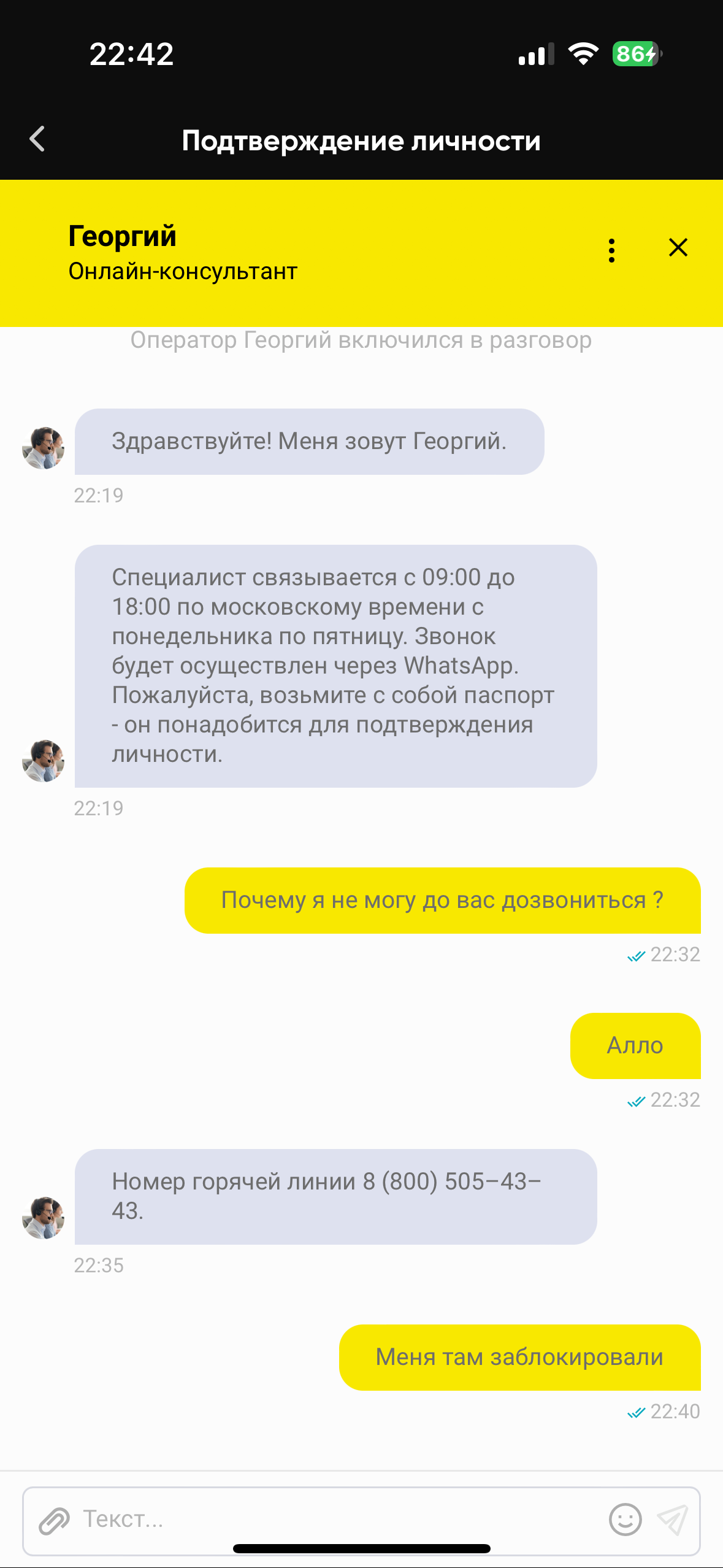 Повторно отправляют на верификацию, без объяснения причин отмены загруженных фото для подтверждения !Написал в их поддержку, на почту, написал в телеграмме, никто не может внятно ответить! Запросил видеоконференцию, морозятся!Все делают для того, чтобы максимально затянуть срок! Затребовали договор с оператором мобильной связи, отправил им скриншот из личного кабинета, так как в Крыму нет не единого офиса МТС! А все это из-за того, что я выиграл в этой конторе! Думал, что это нормальный букмекер, долго играл много проигрывал, а как только начал выигрывать сразу начались проверки, оказалось, что такая же дырявая контора как Пари и Фонбет, где тоже запрещено выигрывать, урезают максимальную сумму ставок, морозятся, не отвечают днями, все ссылаются на администрацию или поддержку. Прошу администрацию ЛИГАБЕТ посодействовать в скорейшем прохождении верификации!
