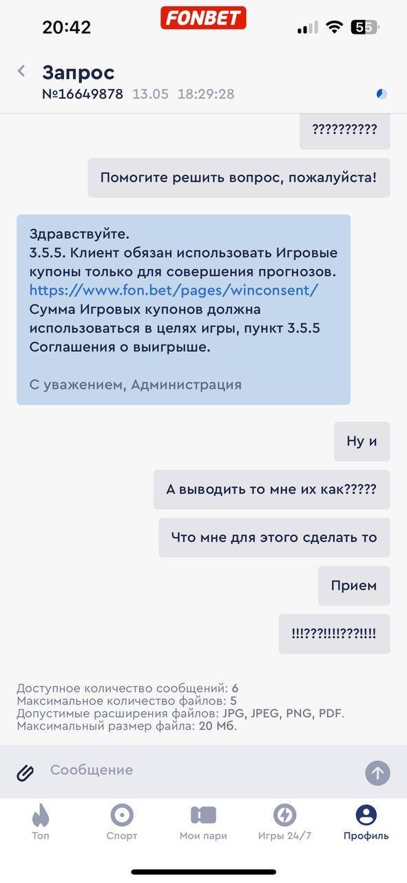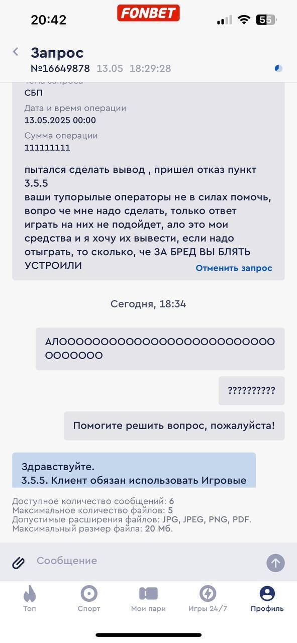 прилетело откуда-то 3.5.5 отказываются выводить, поддержка молчит, отправляет к администрации, администрация игнорирует и пишет шаблон 3.5.5, ни сколько отыграть , ни другой доп инфы, к 3 обращению к ним, уже полностью сгорела 5 точка, как вывести деньги с этой помойки?