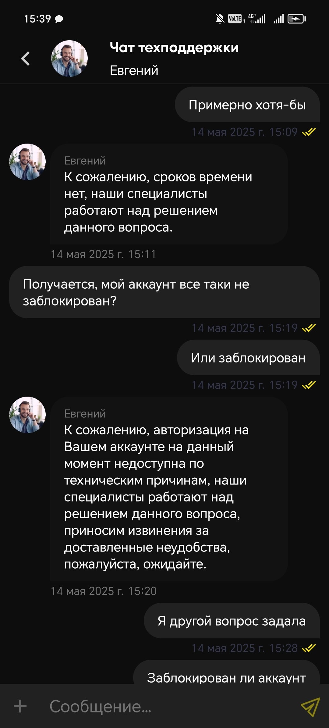 Здравствуйте, зарегистрировалась в BetBoom, начала ставить, сделала пару ставок назначили 1 мая верификация, отправила все документы, потом назначили звонок, который ждала больше недели, вот в понедельник прошёл звонок, сказали ждать. Сейчас увидела, что вывод отклонен, пишет аккаунт заблокирован, я не понимаю почему, верификацию я прошла нормально, правда были вопросы, что такое офсайд, я этого не знала. Пишу в поддержку, они говорят ошибка авторизации на вашем аккаунте, я не понимаю, как мне быть
