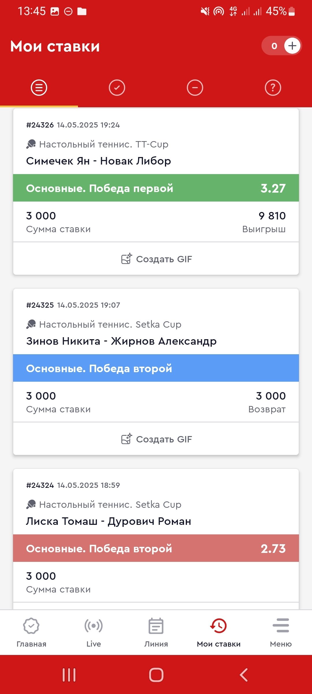 Ставка настольный теннисЗИНОВ Никита- жирнов Александр. Ставка на победу второго. Счёт 2-3, сначала рассчитывают как проигрыш , потом возврат .