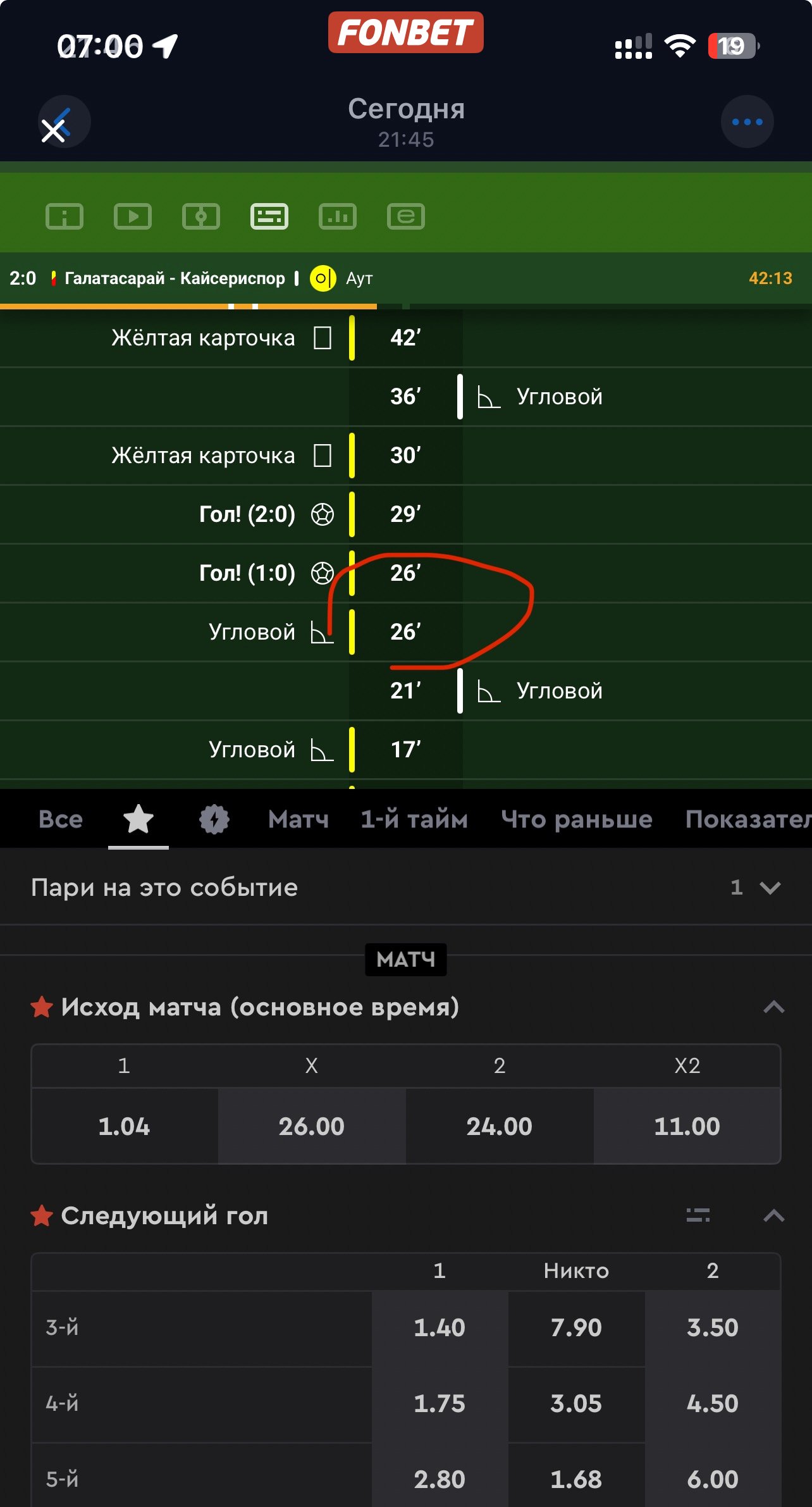 Даже на фонбете(скрин приложил) и то 26 минута😁 вы бы не позорились еще, «эксперты»