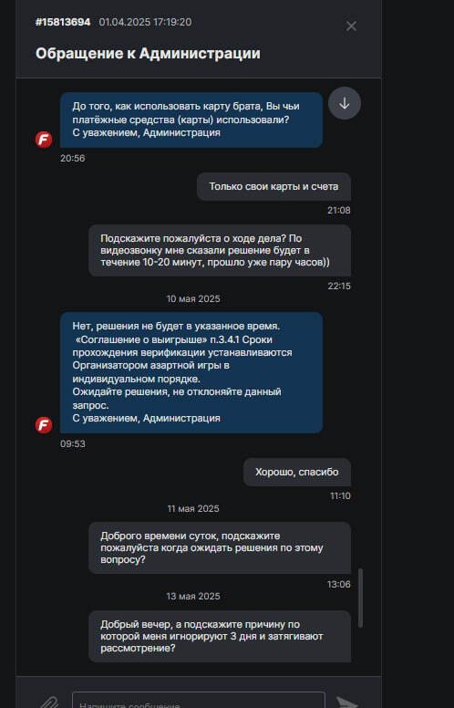 Добрый день. Уже долгое время не можем решить проблему с бк, заблокирован вывод средств, я отправил всё что просили, после чего просто игнор.
