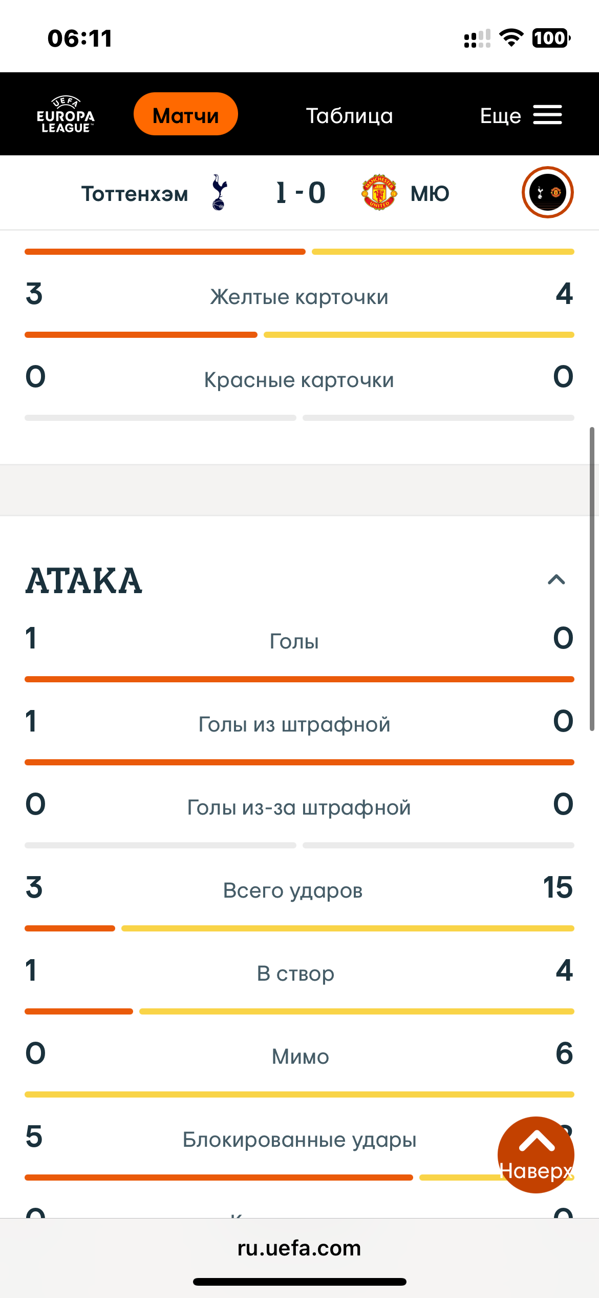 Казалось бы матч который все ждут и смотрят ЛЕ Тоттенхэм - Ман Юнайтед. Поставил после первого тайма в лайве удары вствор МЮ больше 3,5 коэффициент , естественно посмотрел матч до конца и уснул, утро смотрю счет 1:3 ПРОИГРЫШ. Захожу на сайт УЕФА там счет 1-4 в пользу МЮ Поддержка как обычно несет чушь, о том что первоначальный источник 1-3. Быть может последний удар вствор Люка Шоу на 98 минуте и свисток об окончание матча забыли подсчитать ?? Помогите пожалуйста. Статистика матча: