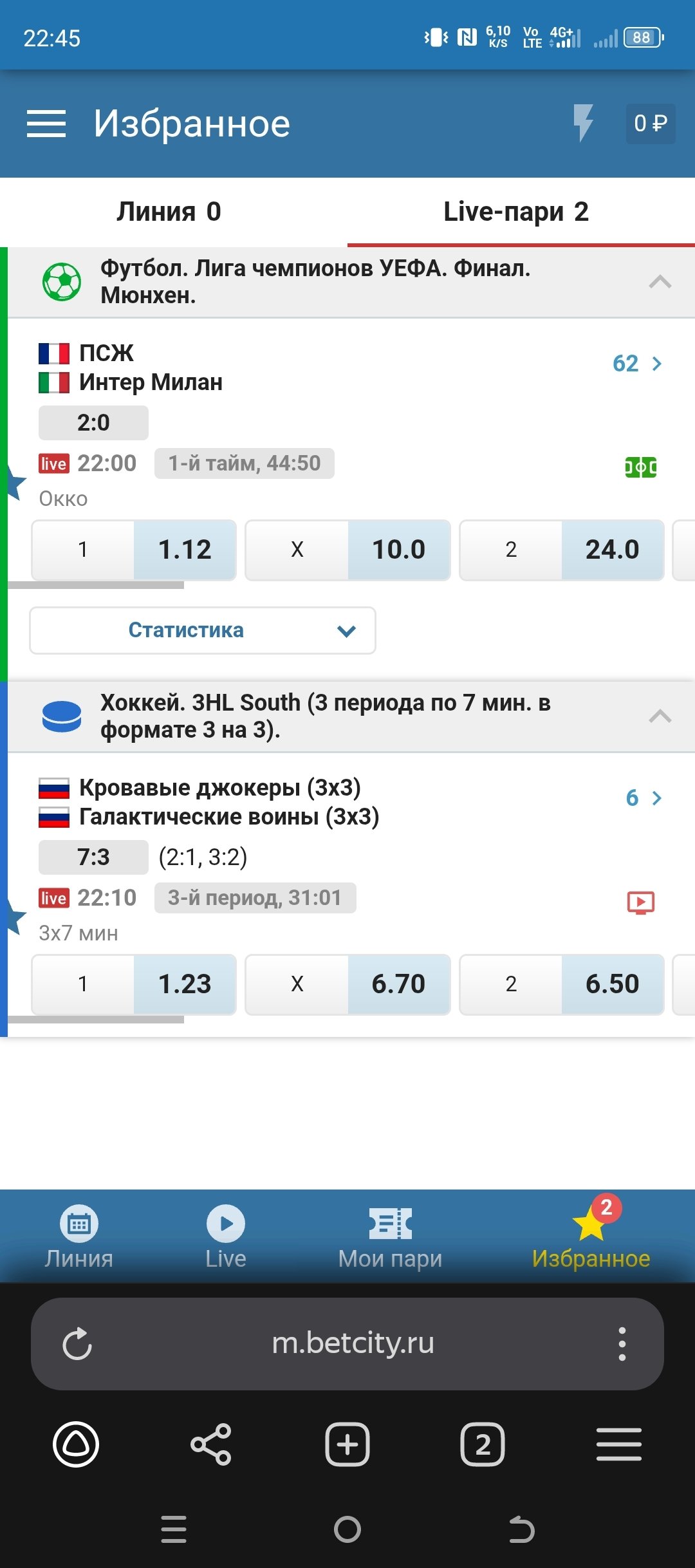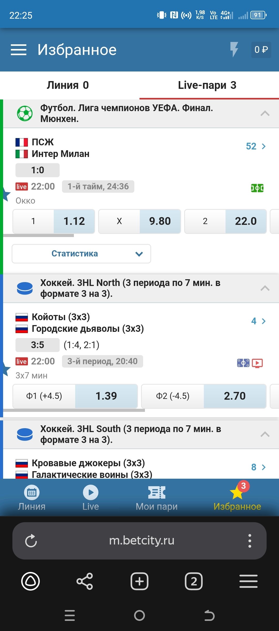 Сделала ставку на Хоккей 3HL North. Матч Койоты-Городские Дьяволы, на тотал меньше 10,5. По информации с сайта БК, шел 3-ий период, время 20:40. Специально сделала скрин экрана, понимая, что что-то не так. По итогу на протяжении минут на сайте был сбой по большинству ставок, данные были искажены. На мои вопросы по поводу возврата пари, БК молчит. Есть несколько скринов о том, что был сбой в программе и данные были не верны. Прошу вернуть мою ставку.