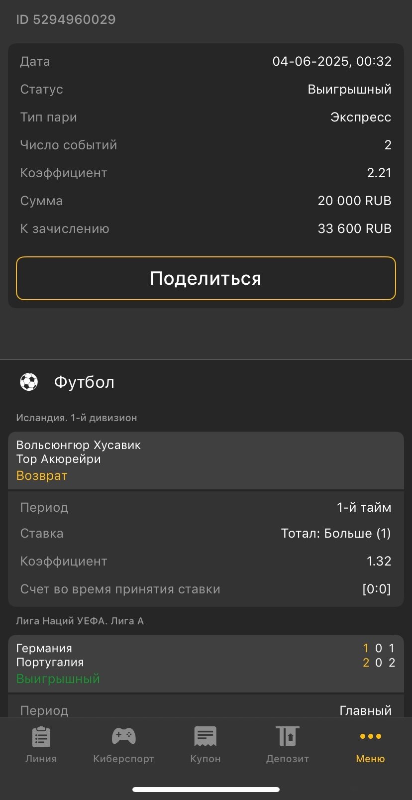 Добрый вечер. Поставил ставку вольсюнгюр хусавик-тор акюрейри первый тайм больше одного, в первом тайме забили 3 гола. Ставку рассчитали как возврат, поддержка пишет, что типо ошиблись в линии, т.к. команда 2 играла домашний матч. Помогите пожалуйста
