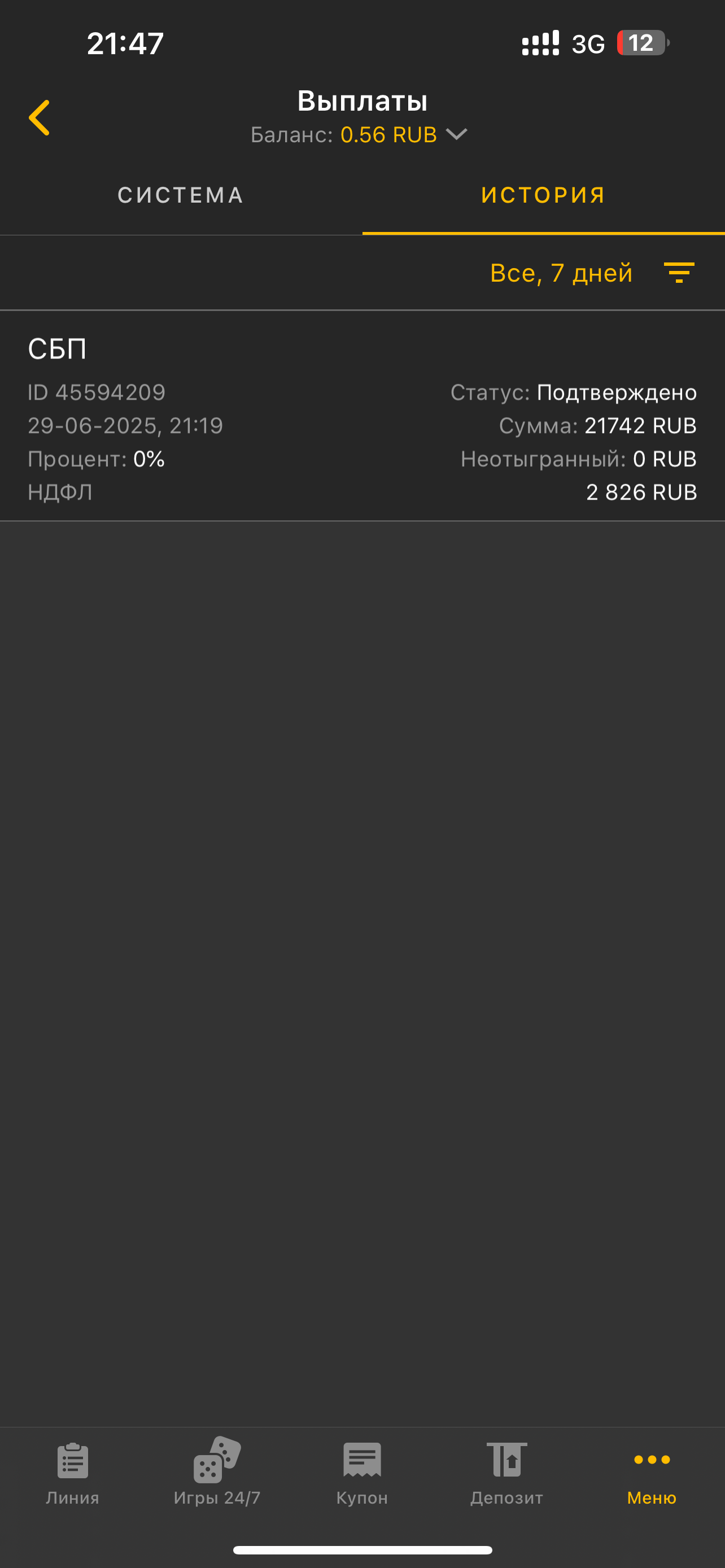 Поставил 11150р, выигрыш составил 21742рПри выводе удержали налог 2826 р - то есть 13% на всю сумму вывода. При расчете налогов существует термин налоговая база - то есть налог идет именно на выигрыш, депозит не берется в расчет при начислении налога - получается с меня просто удержали средства в два раза больше, и сама контора оставит их себе при выплате налогов.