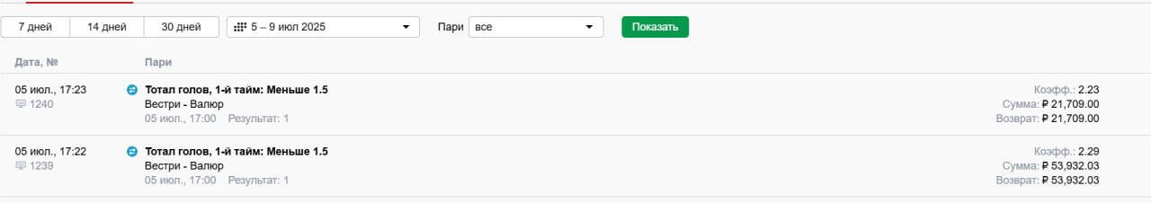 Да, но по ним у меня нет вопросов. Смысл в том, что букмекер отменил ставку на тотал меньше.