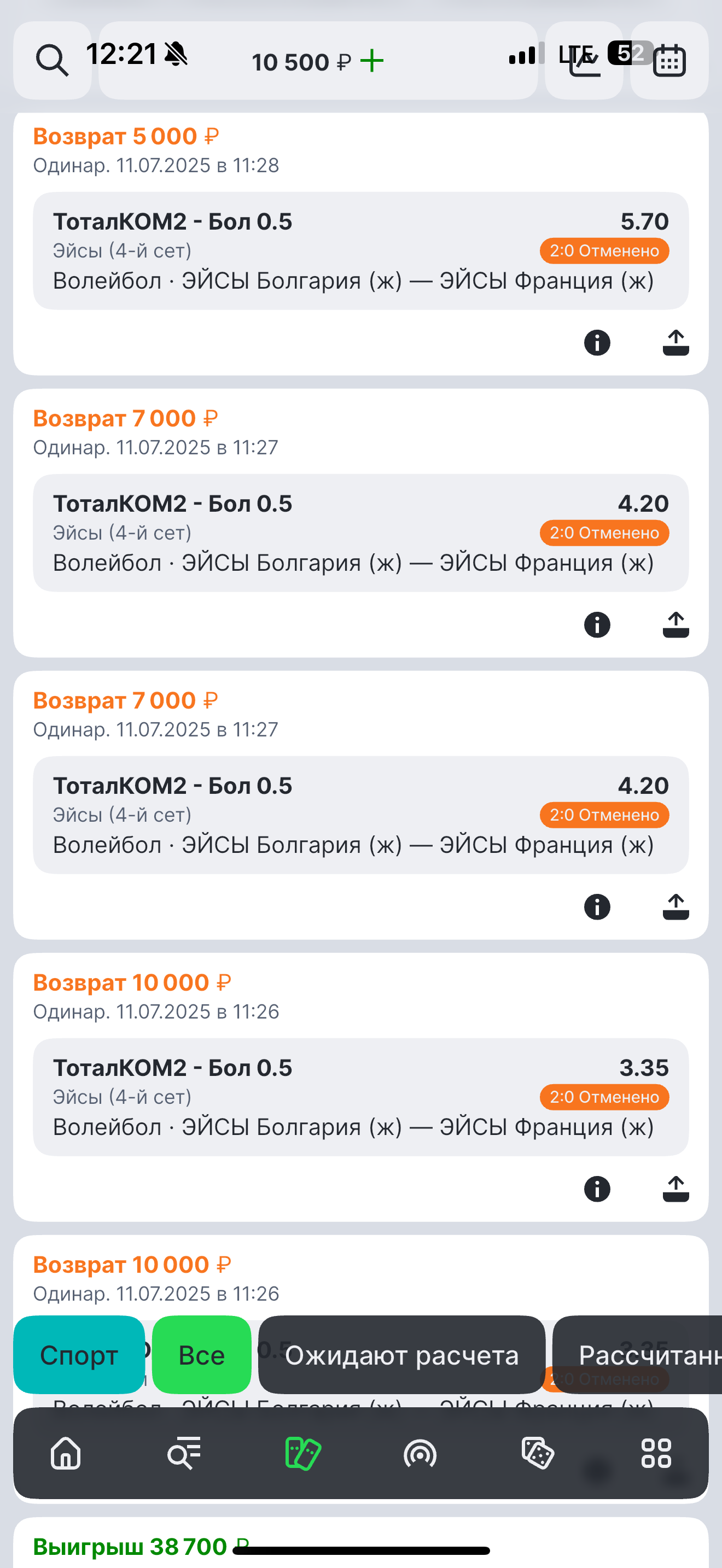 Уважаемый легал бет,это не мошеннические действия,вначале они рассчитали ставку одну из 6 победой,то есть согласились с тем что я выиграл,а далее когда я написал про другие они написали что возврат.