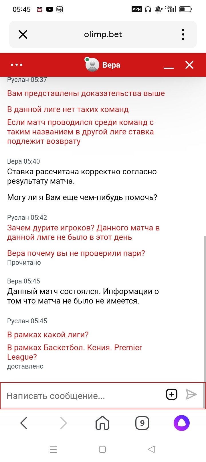 Матч проводился. Но воарос его уровня. Задержек. На меня как на игрока ложится болтше издержек если Лига не высшая. Я ставлю на баскетбол часто. На редкие лиги. Но на высшие лиги стран. На 18 летних и 20 летних, вторые дивизионы я стараюсь не ставить вообще. Букмекер сильно ввёл в заблуждение игрока. Прошу передать мои доводы. Логика мыслей и пруфы важны. Потому что я собрал исчерпывающий кейс. Если будет отказ то это станет процентом что в реквизитах события букмекер вообще может указывать что угодно. Со мной такое втрое раз в жизни. Ранее было +- похожее в Тенниси и они быстро сделали возврат пари.