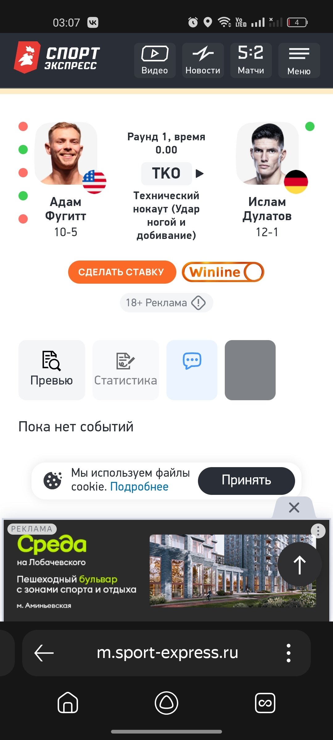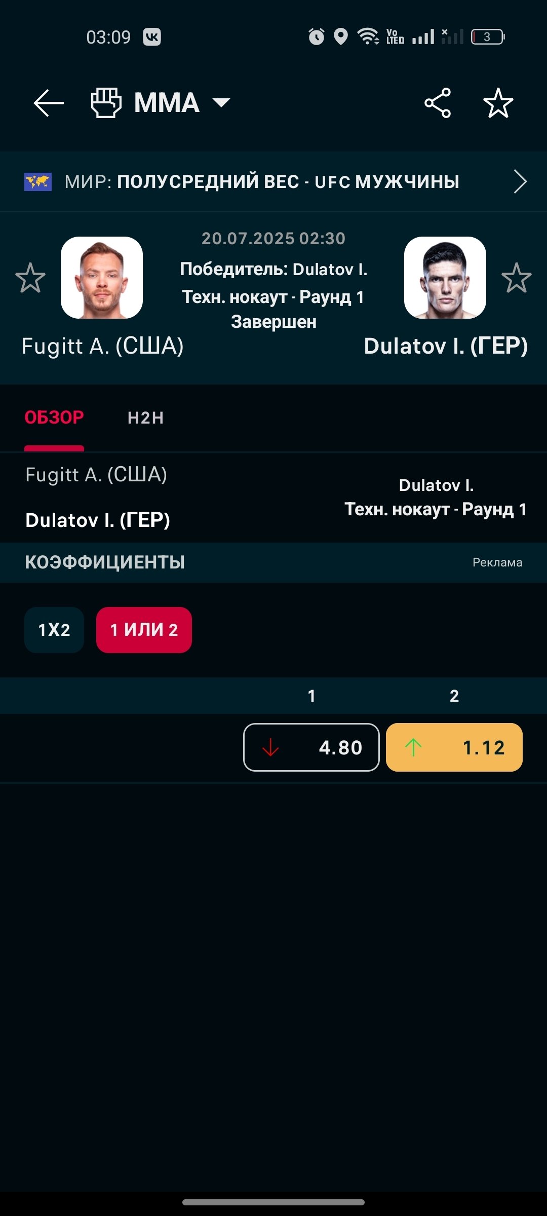 Бой Адам Фьюджит Ислам Дулатов, ставка была сделана на технический нокаут, расчитали как проигрыш, хотя это не так, в других конторах и везде написано TKO технический нокаут, но фонбет расчитали проигрыш, пишу в поддержку говорят только одно "верно" но на деле это не так, они не слышат игроков и не видят реальность, привела доказательства что это технический нокаут но им все равно. Если вопрос не решится ухожу из этой БК