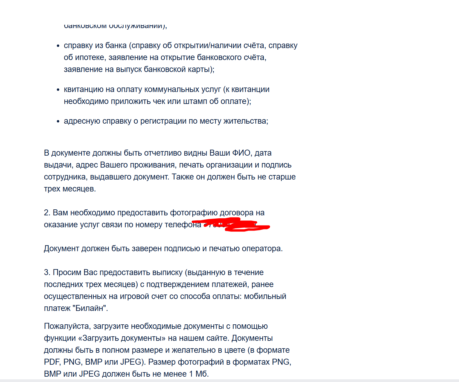 14 июля 2025 года запросили ВСЕГО 2 документа: 1) паспорт и 2) квитанцию на оплату коммунальных услуг - было сразу все отправлено15 июля 2025 года запросили еще документы 1) страницу заграничного паспорта с фотографией (с номером и серией); и 2) банковский договор (договор вклада, кредитный договор, договор об открытии счёта, договор о комплексном банковском обслуживании);16 июля запросили: 1. СЕЛФИ с паспортом и с бумагой в руке 2. Договор с номера 3. Детализация по номеру ВСЕ БЫЛО ОТПРАВЛЕНО17 июля просят отправить ТОЖЕ САМОЕ, но с ПЕЧАТЬЮ - их оператор СОТОВОЙ связи не ставит!