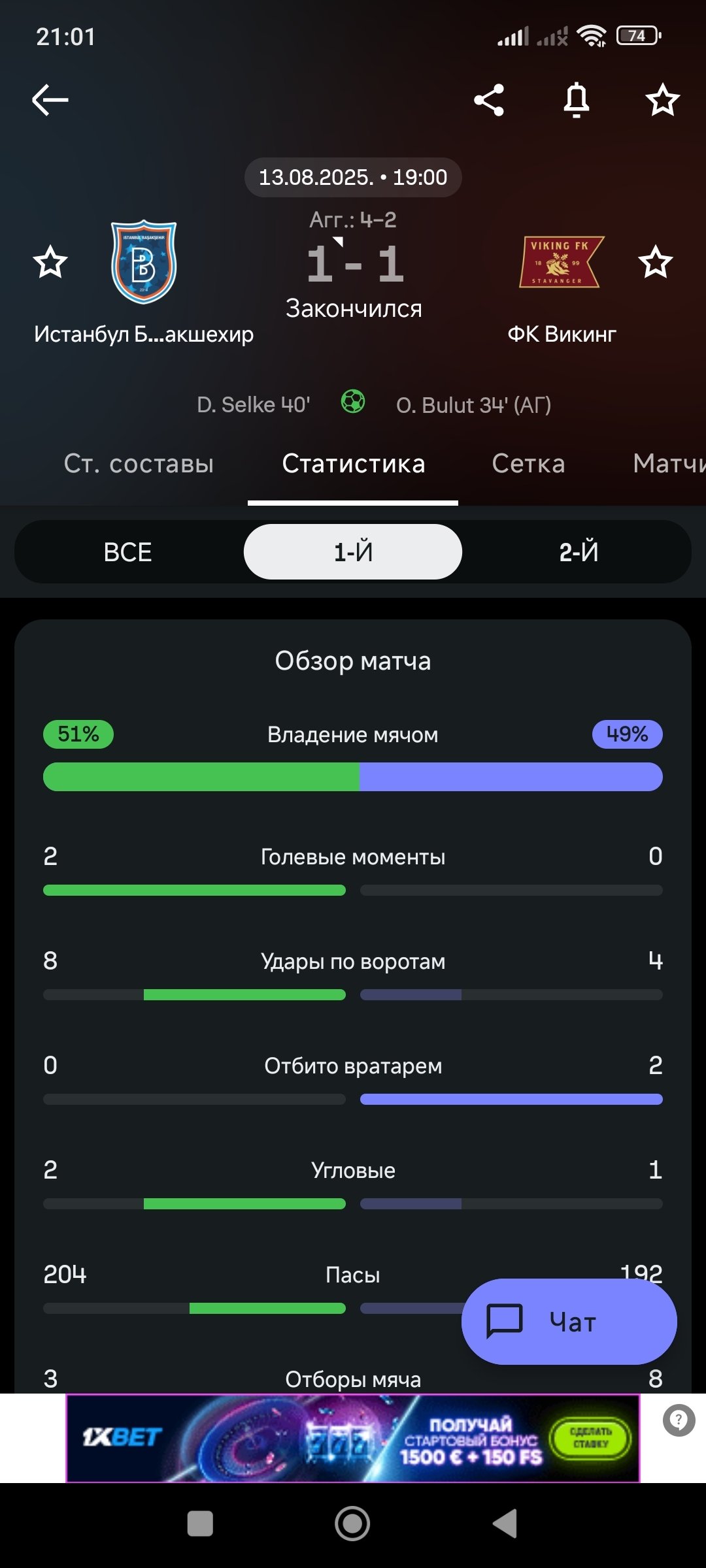 Я понимаю что вы опять ничего не решите, но я пишу это для новых игроков, ребята не ставьте на статистику ни копейки, я ставил на удары по воротам Башакшезир- Викинг первый тайм улары всего 11.5 больше, смотрел видеотрансляцию сделали 8:4, поддержка как всегда говорит мы оасчитали по первоначальному источнику, когда уже на них найдётся управа, настолько обманывают игроков, через минуту сч5т был в официальном источнике 8:4 и все источники пишут 8:4, делайте выводы от этой бу, оставляйте , свои комментарии не бойтесь, эти уроды не в первый раз делают то что бы игроки не сняли свои деньги
