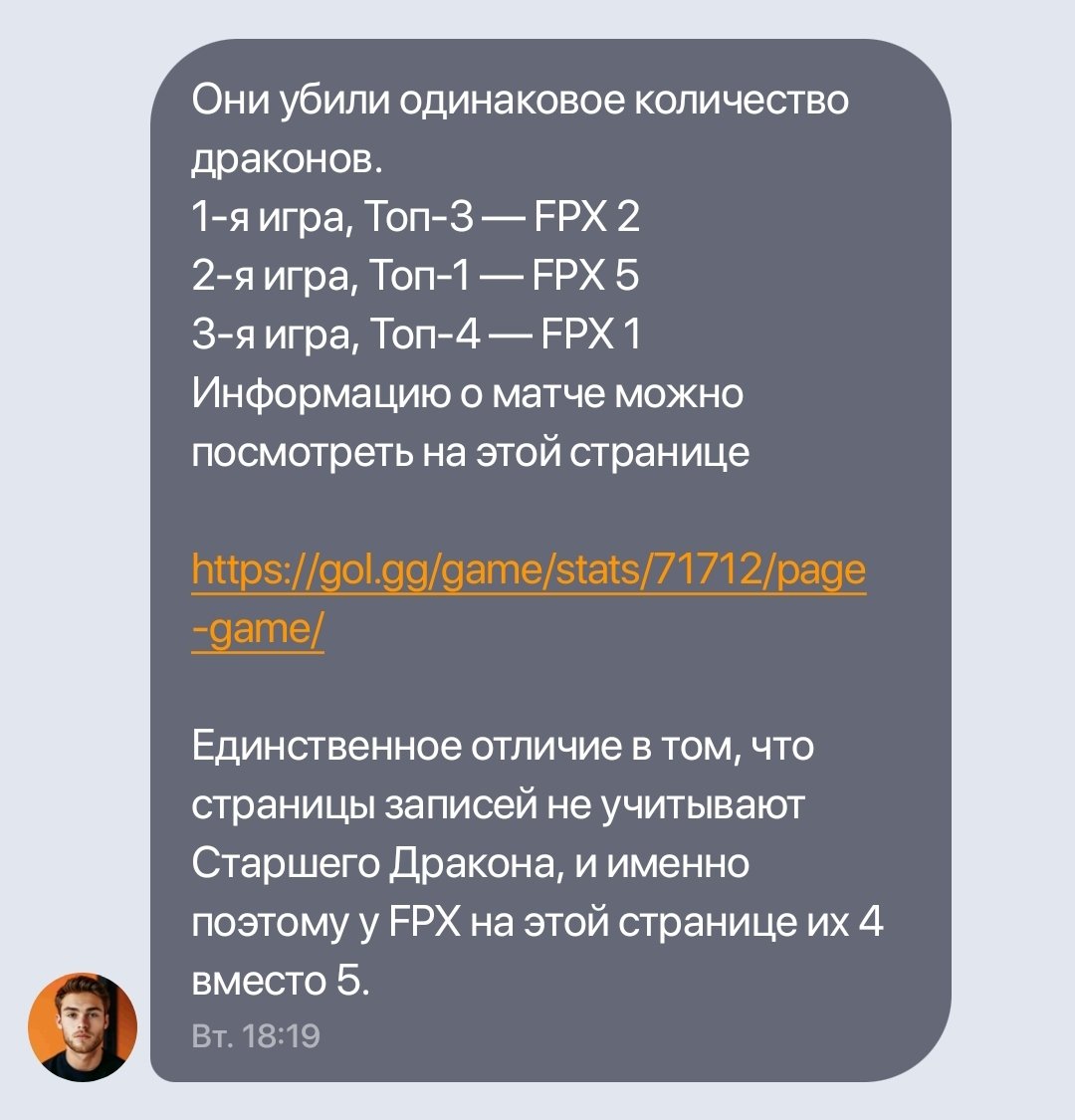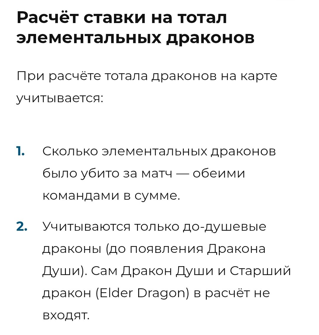 Скрины приложу, но и отпишу ситуацию. Есть две ставки, в которых участвует одно событие. Событие из игры LoL. А именно кто больше убьет драконов за матч. Ставка сыграла, нужная команда с перевесом в 1 убила большее число драконов. Но при расчете ставки к убийствам драконов приплюсовали и убийство старшего дракона, которое совершила другая команда. Итого равенство по убийствам и не сыгравшая ставка. Старший дракон является совсем другим объектом и в расчет браться не должен, ибо в ставках он не упоминается. Но Винлайн пишет в поддержке, что они драконов не различают. Почитал их собственный правила, написано только про драконов, старшие не упоминаются, хотя должны быть прописаны, если они их суммируют.