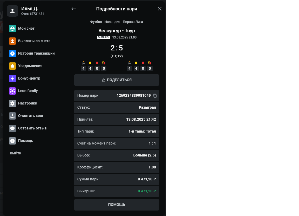 По информации от букмекера, ставка рассчитана возвратом по причине того, что совершена на уже известный результат. Возврат ставки в рамках правил.