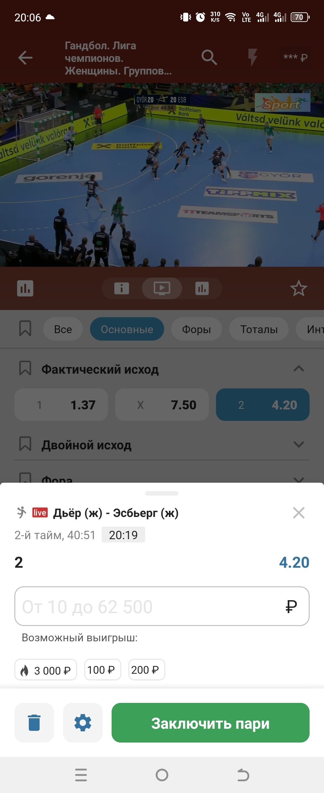 Гандол не фаворит приняли ставку с опозданием коэфицента и счета, а счет был другой