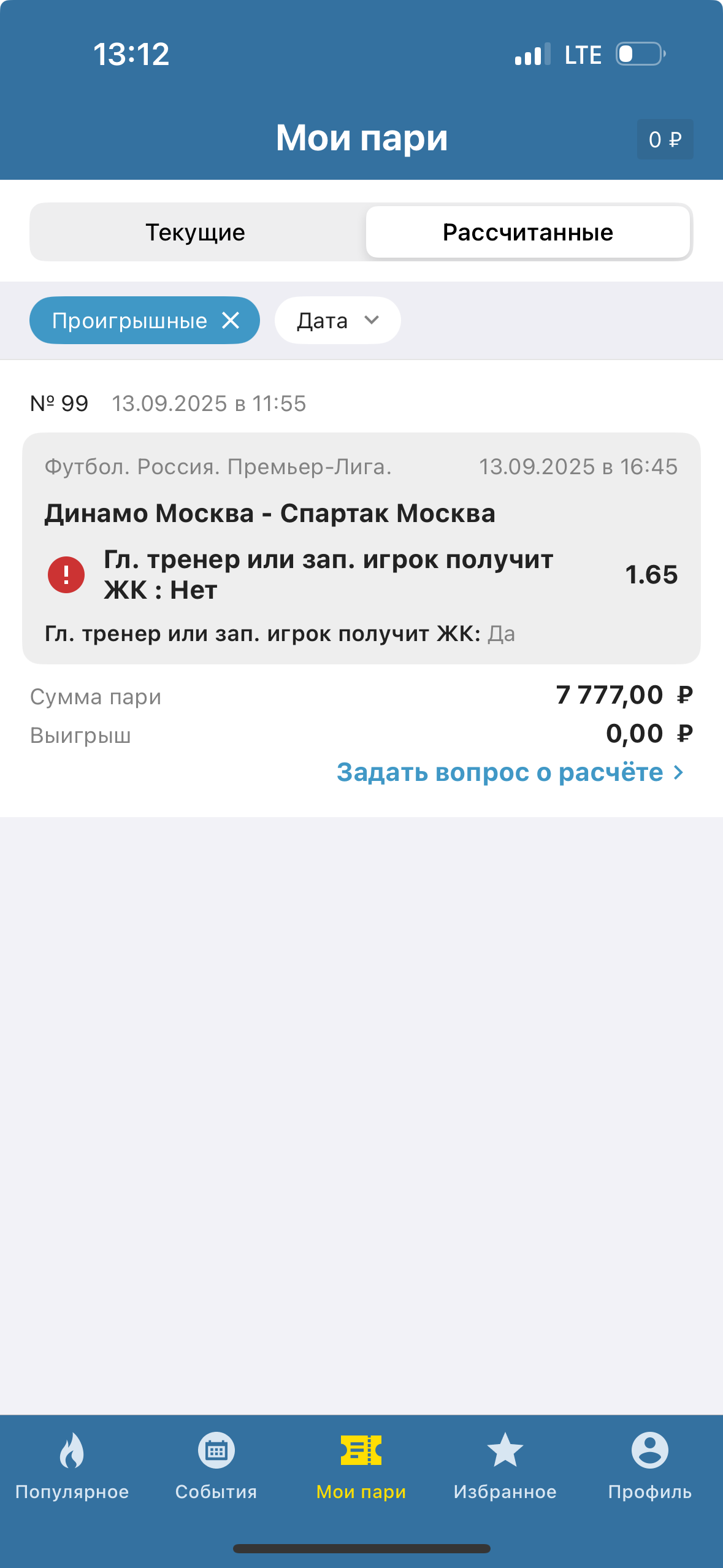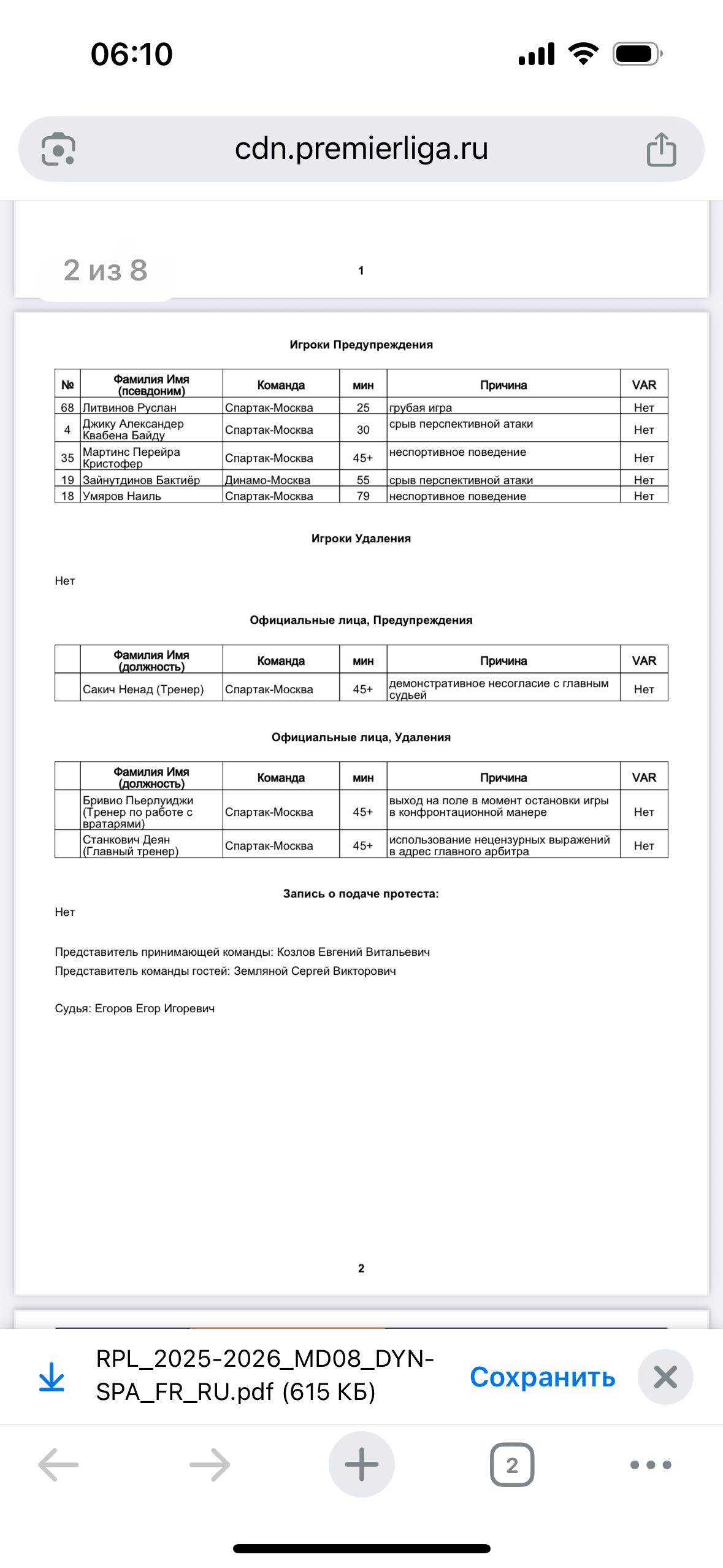 поставил ставку в бетсити что в матче рпл Динамо -Спартак не будет желтой карточки главному тренеру или запасному игроку . В матче Динамо -Спартакглавному тренеру или запасному игроку желтой карточки не давали прикрепляю на ссылку протокол матча с официального сайта рпл составленного судьей Егоровым Бетсити ответил мне что желтая карта была показана главному тренеру Спартака , но на мои ответ что ее не было и на мое предъявление официального протокола матча они проигнорировали и сказали чтоб я писал в поддержку на почту , и они мне сказали что результат у них в бетсити был определен на основе видеотрансляции . Я прав!! У меня есть протокол судьи официальный и я его прикрепил написал им в поддержку на почту мне НЕ отвечают уже 13 часов БЕТСИТИ НЕ ПРАВИЛЬНО РАССЧИТАЛ МНЕ СТАВКУ СНОВА ПРИКРПЕЛЯЮ ССЫЛКУ НА ПРОТОКОЛ МАТЧА :