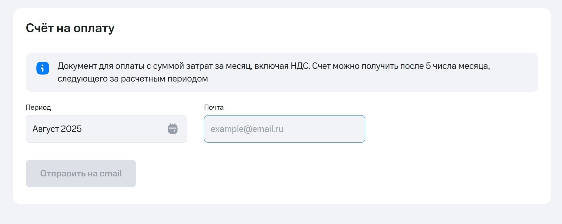 более развернутый ответ получил от 0890- отсутвие функционала отправки счета у всех абонентов мтс с тарифами от 2023 и моложе , В таких тарифах ежедневное списание ( в моем случае 49,5 руб в день ) и не выставляются счета .     Готов провести видеовстречу от моего компьютера с личным кабинетом МТС ( уже изучил его как никогда ранеее )
