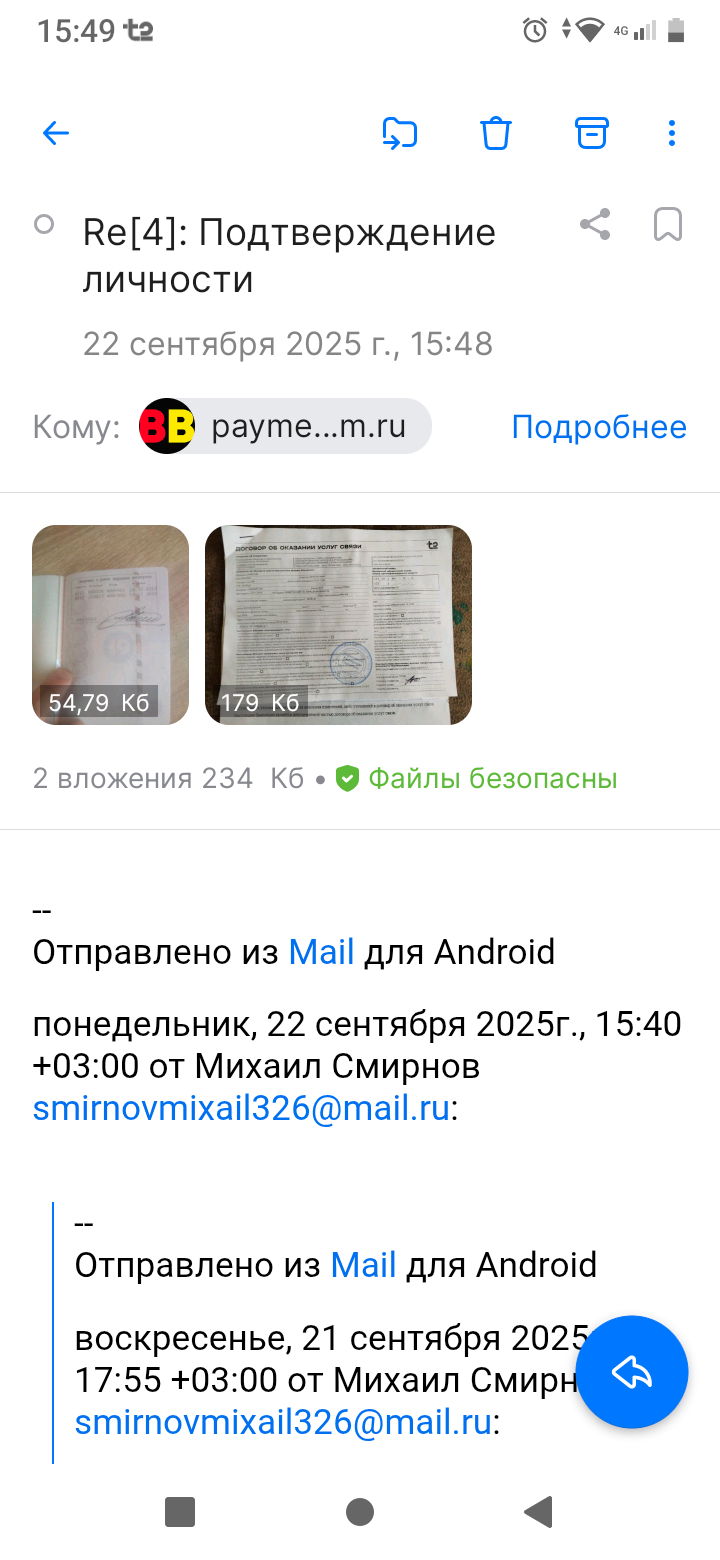 Ещё раз отправил фото и договор вместе не правильно прочитал ваше письмо