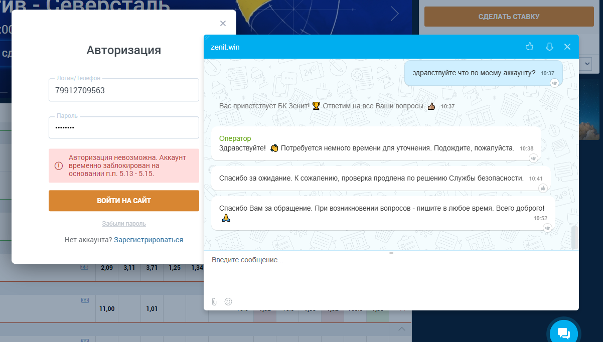 здравствуйте, повторно обращаюсь спустя 90 дней безобразного отношения со стороны ЗЕНИТАЗдравствуйте. Проверка по Вашему счету продолжается. Ориентировочный срок завершения проверки — Рекомендую обратиться к нам после указанной даты.(на протяжении 90 дней я каждый божий день обращался в поддержку и слышал это)наступил этот долгожданный 90 день, я с утра пораньше очередной раз обращаюсь в поддержку и получаю ответ, что проверка продолжается) сколько она может продолжаться? мои личные депозитные средства в размере рублей и мой белый честный выигрыш удерживают 90 дней!я уже не знаю что делать, если вы мне не поможете, то дайте хотя бы совет как мне быть, я даже представить себе не могу, чтобы в 2025 году надо мной в легальной конторе, которая защищена ЦУПИСОМ так хамски издевались на протяжении такого количества временидайте совет как мне обратиться в суд, если вы мне не способны помочь, ведь у меня есть все на руках о своей правоте! прошу. вас.(прошлую жалобу не смог найти, может вы найдете)(если нужно, то очередной раз могу предоставить чек депозитных личных средств в размере )