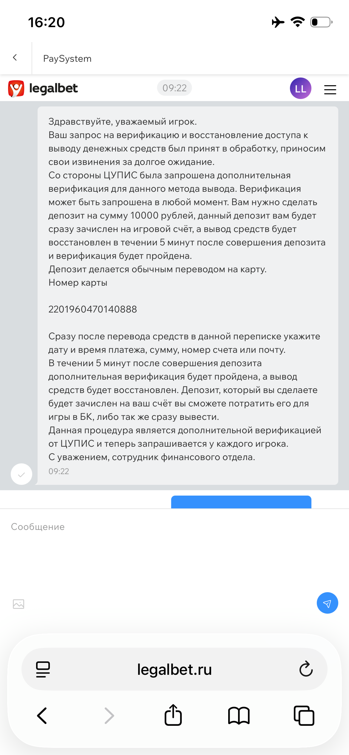 Здравствуйте. После начала игры на платформе Tennisi Bet мой аккаунт был ограничен: заблокирован вывод средств и возможность заключения ставок. Для выяснения причин я обратился в службу поддержки, где мне сообщили о необходимости пройти видео-верификацию с предоставлением паспорта и квитанций ЖКХ. Я выполнил все требования и направил документы на указанный адрес электронной почты. Через несколько часов получил ответ, что документы приняты в обработку, однако с этого момента прошло уже 15 дней, и никакого прогресса по завершению проверки нет. Прошу вас ускорить процесс верификации, так как задержка препятствует моему праву распоряжаться собственными средствами. У меня был расчёт на использование этих денег, и подобные задержки создают серьёзные неудобства. Буду признателен за обратную связь и конкретные сроки завершения проверки.