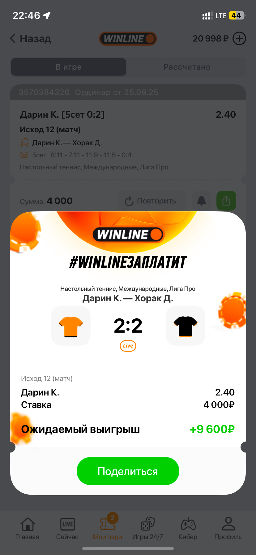 ставил ставку при счете 0:1 в сете , счет стал 0:2, коэффициент на ставке изменился на 2,95, но букмекер принимает ставку по коэффициенту 2,4 который был при счете 0:1 не предлагая согласится с изменениями коэффициента, на скриншоте видно что счет 0:2 на момент принятия пари , коэффициент неверный, так же функция автоматического соглашения с изменениями коэффициента отключена считаю что данная ставка не должна была быть заключена, так как произошел сбой , приняли не верно, не предложили согласится с изменениями, так же даже поддержка мне ответила на мой вопрос какой был коэффициент при счете 0:2 , ответ поддержки - на скриншоте видно ставка принята при 0:2 за 2,4что просто невозможно повторюсь , букмекер принял ставку условно без моего согласия на изменение коэффициента, так еще и в наглую принял за не верный коэффициент повторюсь , при счете 0:2 было 2,95, это даже подтверждала сама поддержка в чате , на скриншоте видно сет (0:2)