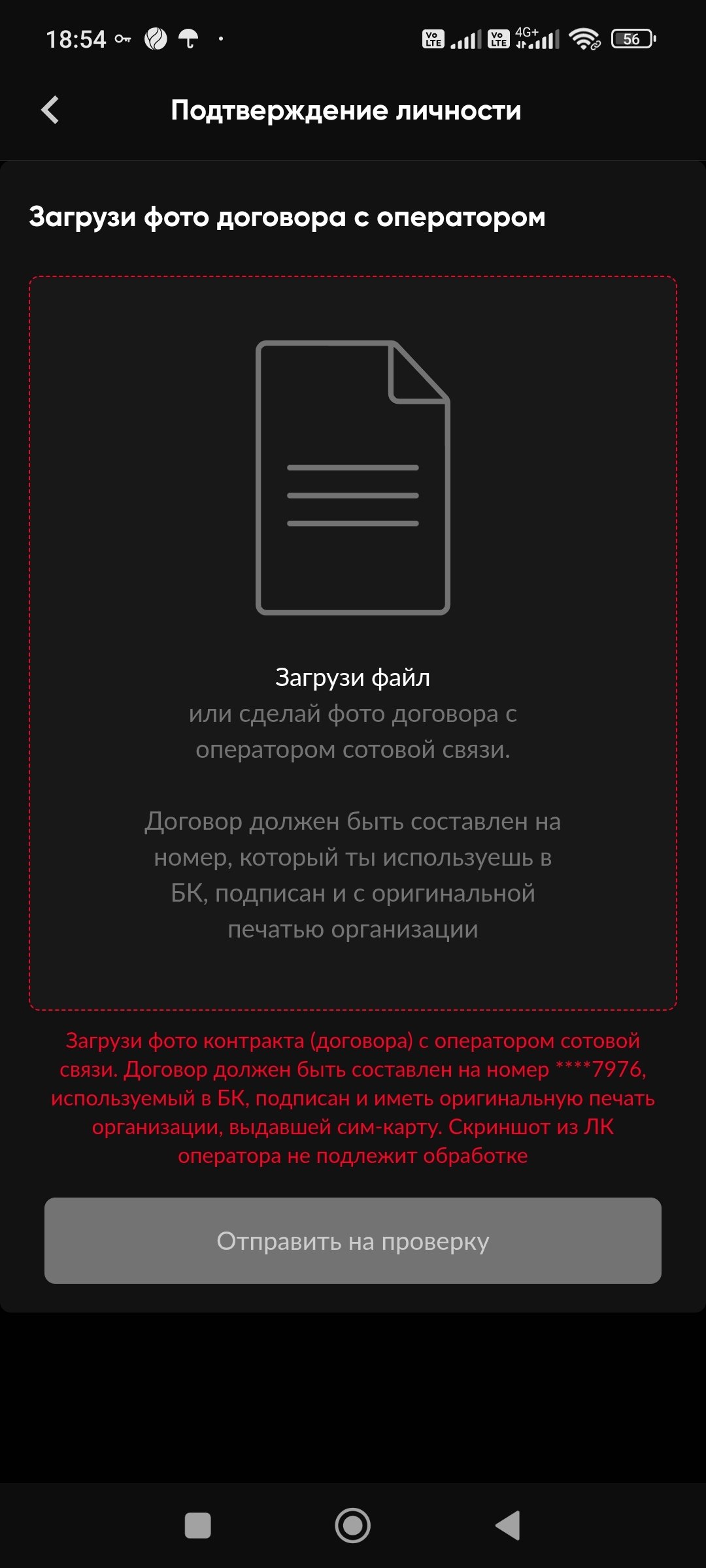 − скан/фотография договора с Оператором сотовой связи, заключенного на номер телефона,