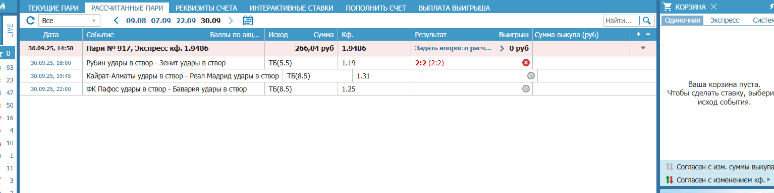 Рассчитали ставку кубкового матча как проигрышную матч смотрел и в объективности рассчёта я сомневаюсь.Матч Рубин _Зенит тб ударов в створ 5.5.На просьбу указать источник по которому они рассчитали поддержка ответила общими фразами ссылаясь на правила писали мол как мы честные -прямым текстом-но так и не предоставили ни ссылку на источник ни скриншота посоветовали написать ещё куда то где якобы будут рассматривать 10 дней.играть конечно пропало играть у них окончательно.рассудите кто прав кто ни прав?