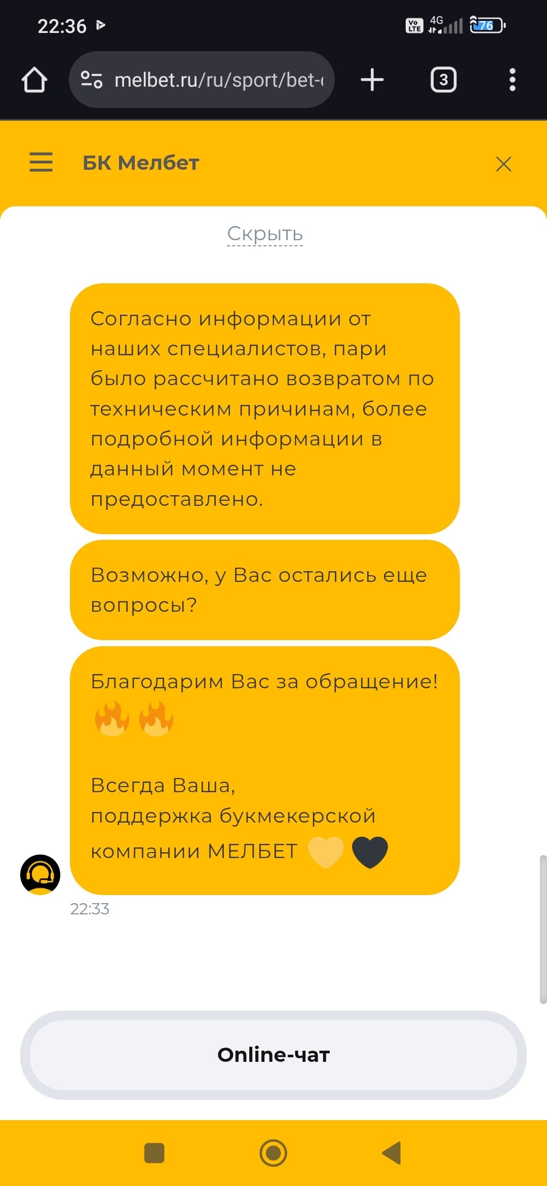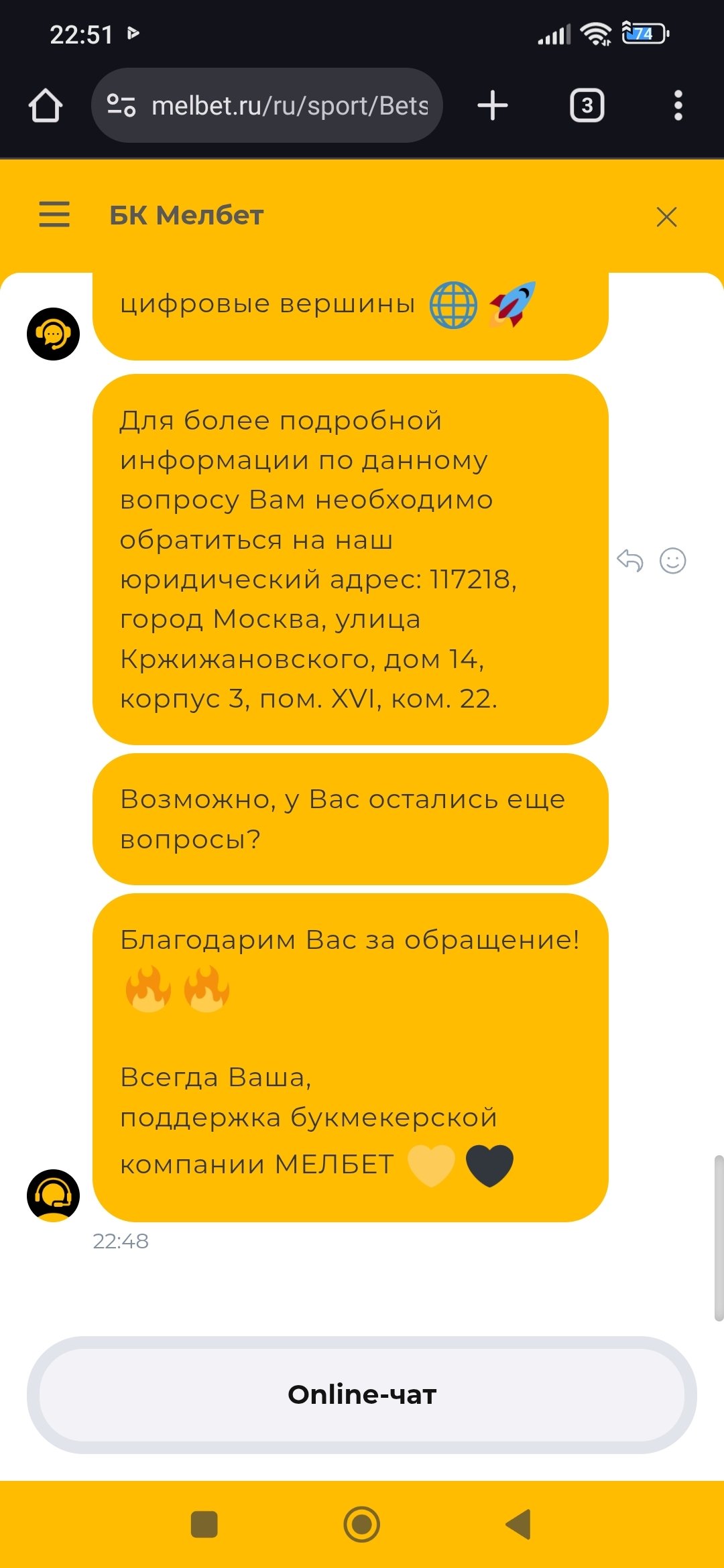 Здравствуйте, к сожалению стал свидетелем обмана со стороны данной БК, с которой не желаю больше иметь дела, но хочу забрать хотя бы свои деньги, потому что это не лезет ни в какие рамки, совершил ставку на матч, матч закончился в мою пользу, по всем источникам уже есть результат, и даже по альтернативному источнику данной БК, хотя нет, даже на самом сайте есть результат, что матч окончен в мою пользу, только рассчитывать ставку они не хотят, ведь они что-то уточняют и не хотят говорить что, а в начале указали, что если не получат какую-то никому не известную информацию в течение трёх дней, то вправе рассчитать ставку с коэффициентом 1, я считаю, что это прямое удержание денег в ставке без рассчёта и обман, прошу разберитесь с этим