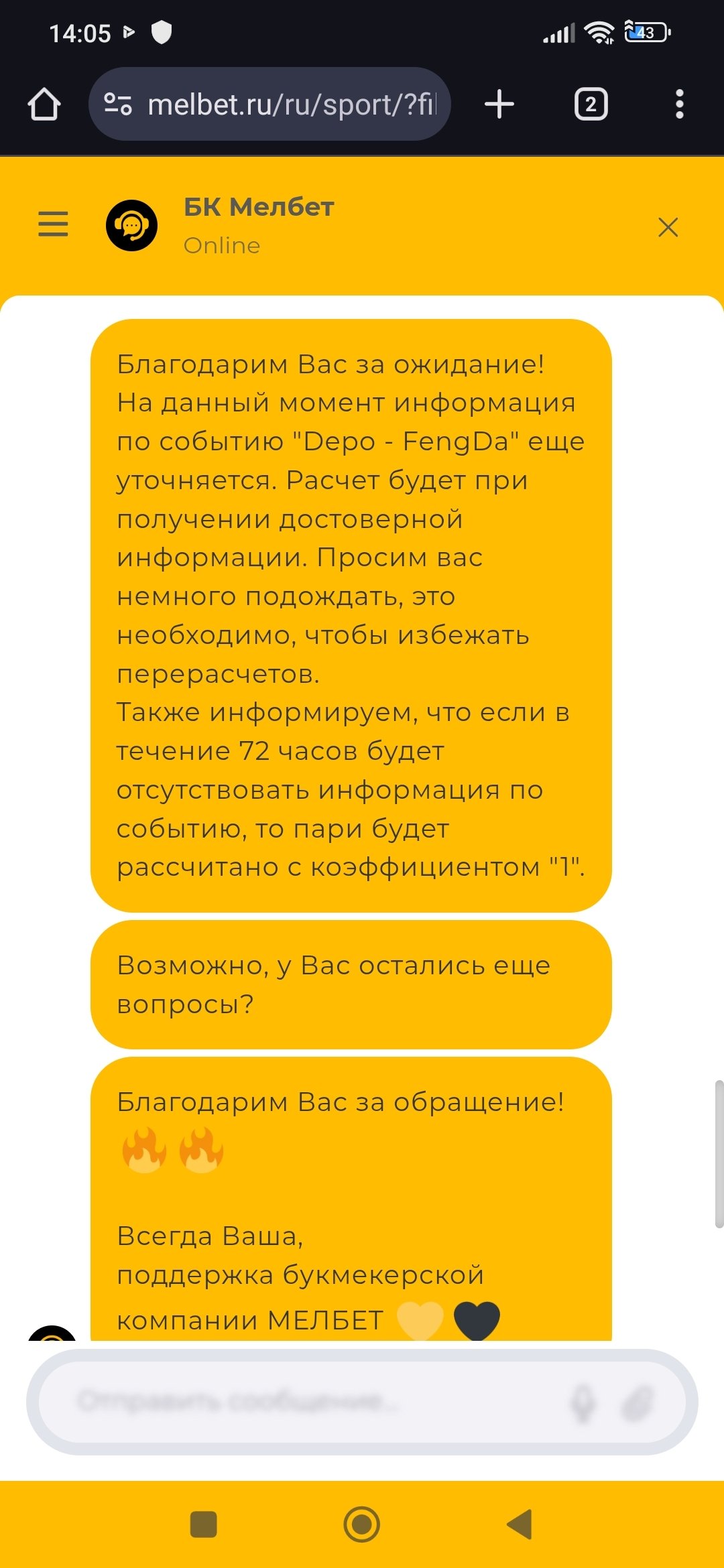 Не получается загрузить на сайт скриншоты переписки с поддержкой, поэтому отправляю данным способом, а так же вот ссылка на их альтернативный источник https://egamersworld.com/counterstrike/match/1yJfr0k1F2/depo-vs-fengda-gaming-1wfwBAMOx