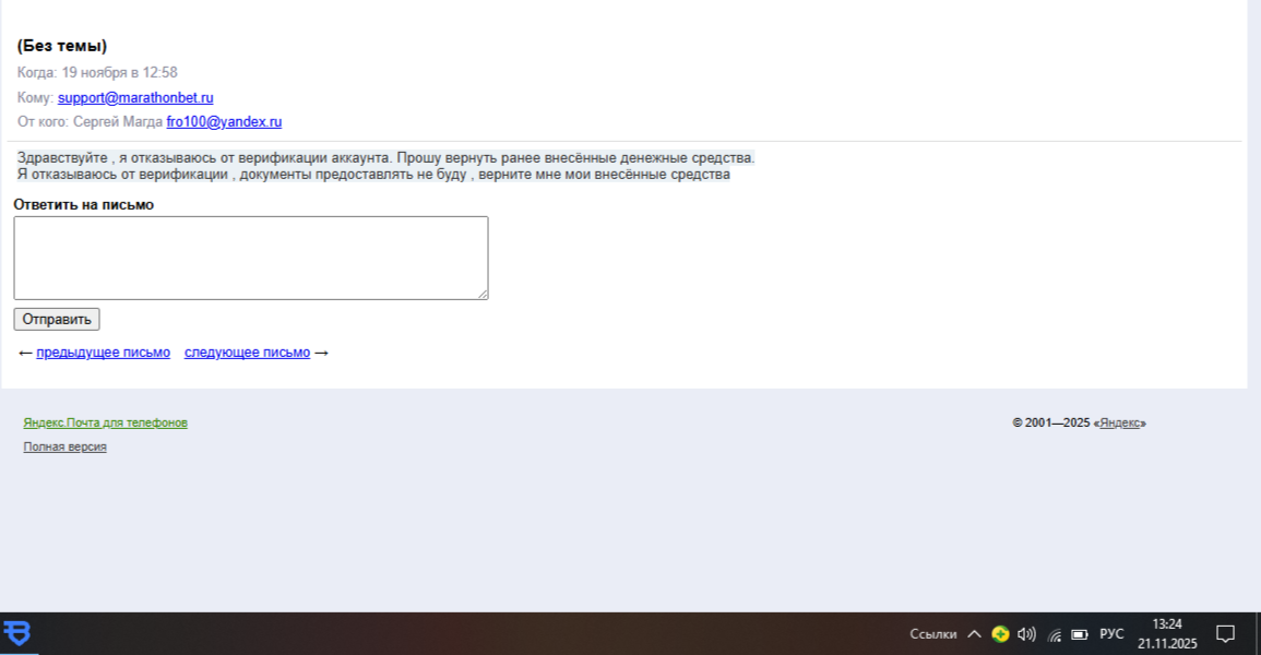 Жалоба №14329681: Блокировка вывода средств - верификация
