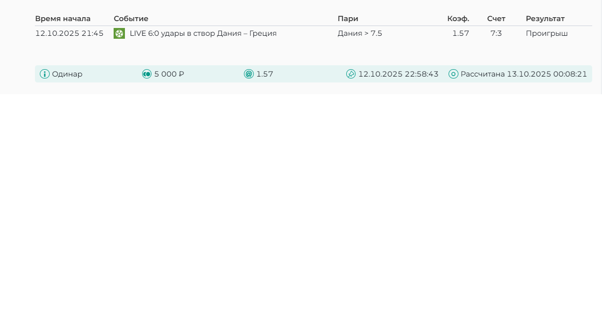 Ставка была 5000р на индивидуальный тотал в створ ворот в сборной Дании в матче Дания - Греция, при счёте по ударам в створ 7:2 начал смотреть матч, 8 удар в створ пришел от сборной Дании пришел на 80+ минуте, все сайты "Score" показывают итоговый счёт по ударам в створм 8:4, а БК пари тупо ссылается на иточник липовый, который показывает итоговый счёт по ударам в створ 7:3, явный обман, предоставил мне ссылку, а они пишет если мол не согласен записывай видео с тайм кодами и считай удары в створ